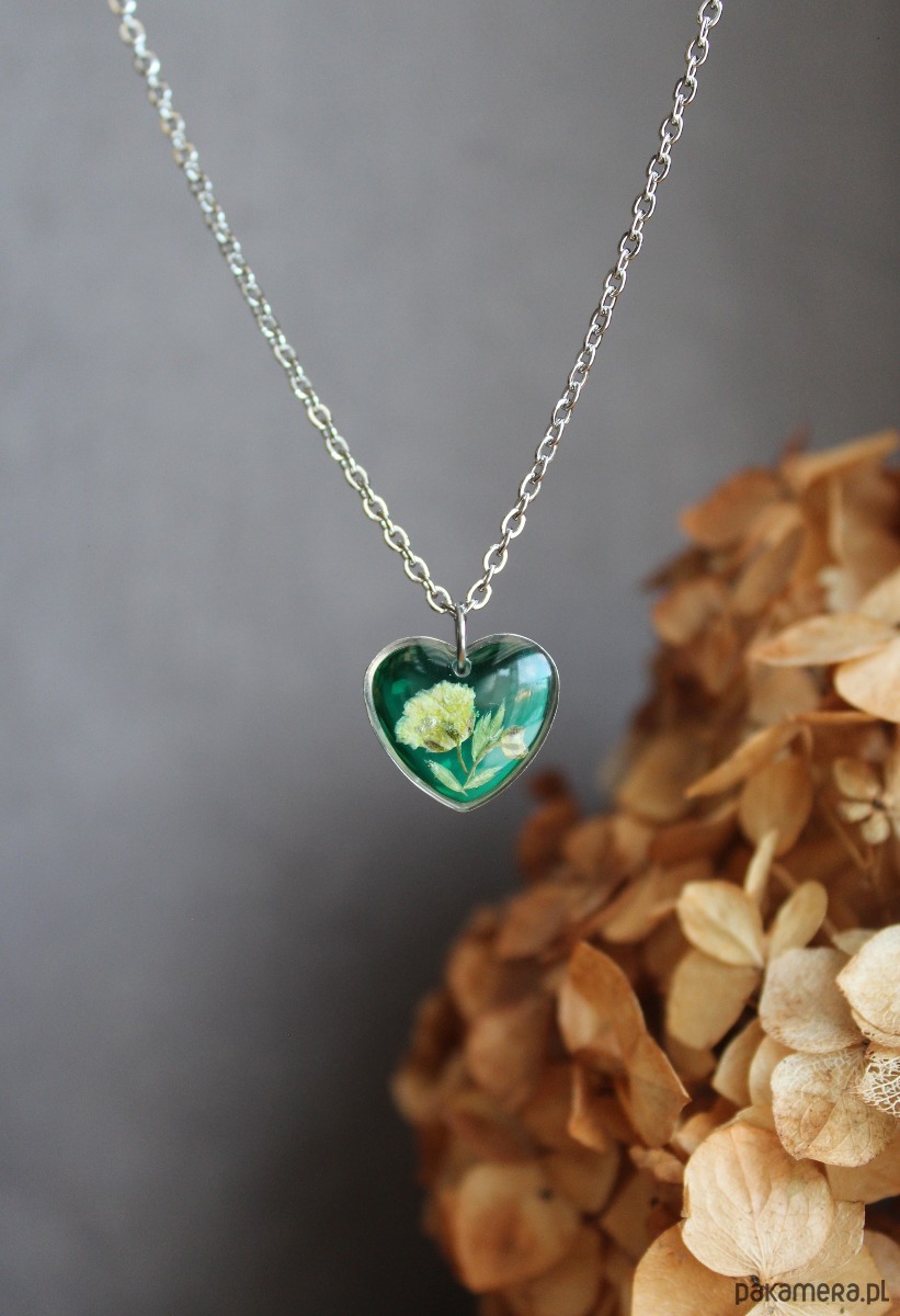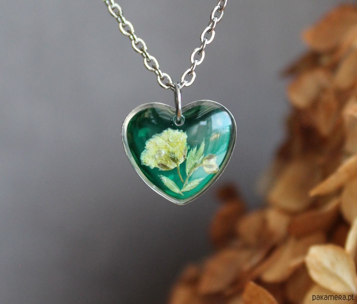 Oferuję Państwu unikalną biżuterię. Zawieszka jest wykonana z suszonych kwiatów i żywicy epoksydowej. Biżuteria jest wspaniałym i oryginalnym prezentem na lata.