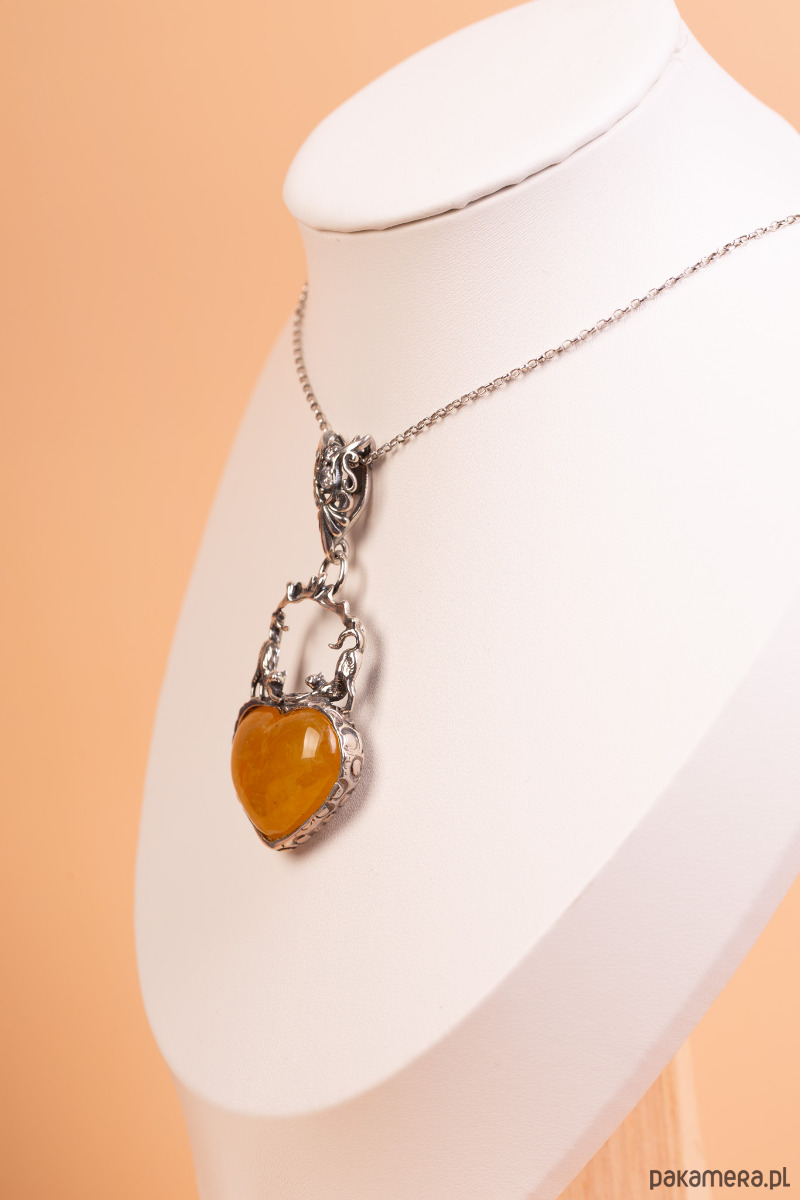 Waga i odczucie: Masa 13 g świadczy o solidności wykonania i dużej ilości użytego kruszcu. Wisiorek jest wyraźnie wyczuwalny na dekolcie, co podkreśla jego rzemieślniczy charakter. Gładko wypolerowana powierzchnia bursztynowego serca jest niezwykle przyjemna w dotyku, zachowując naturalne ciepło bałtyckiej żywicy.