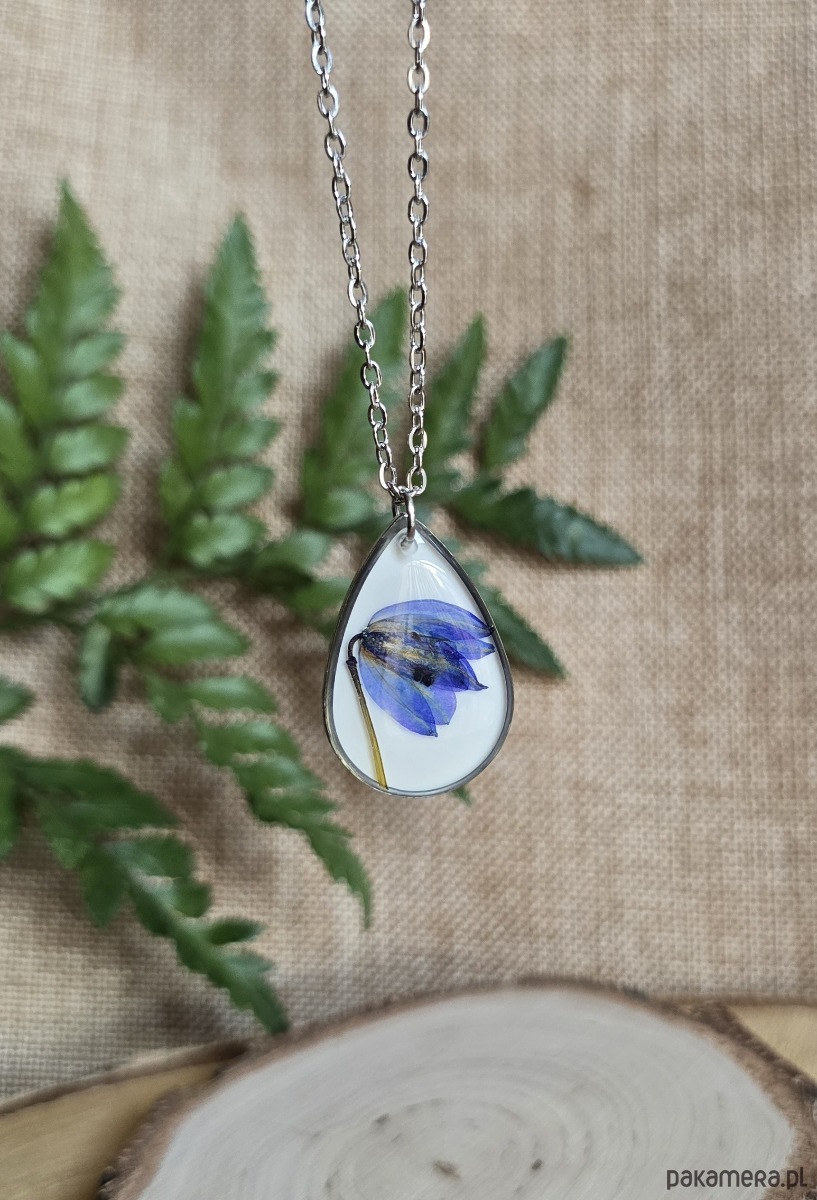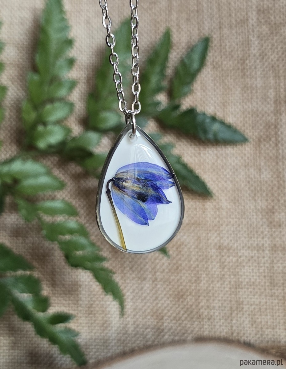 Oferuję Państwu unikalną biżuterię. Zawieszka jest wykonana z suszonych kwiatów i żywicy epoksydowej. Biżuteria jest wspaniałym i oryginalnym prezentem na lata.