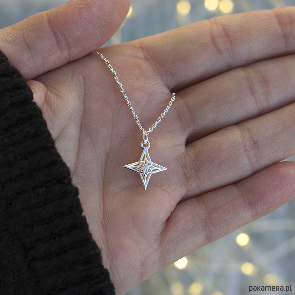 Srebrny wisiorek z różą wiatrów