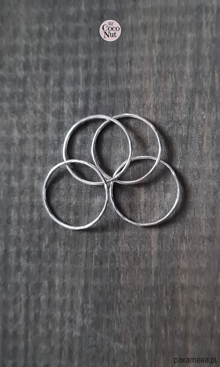 obrączki wykonane ręcznie o szerokości ok. 1 mm, po zakupie prosimy podać rozmiar.