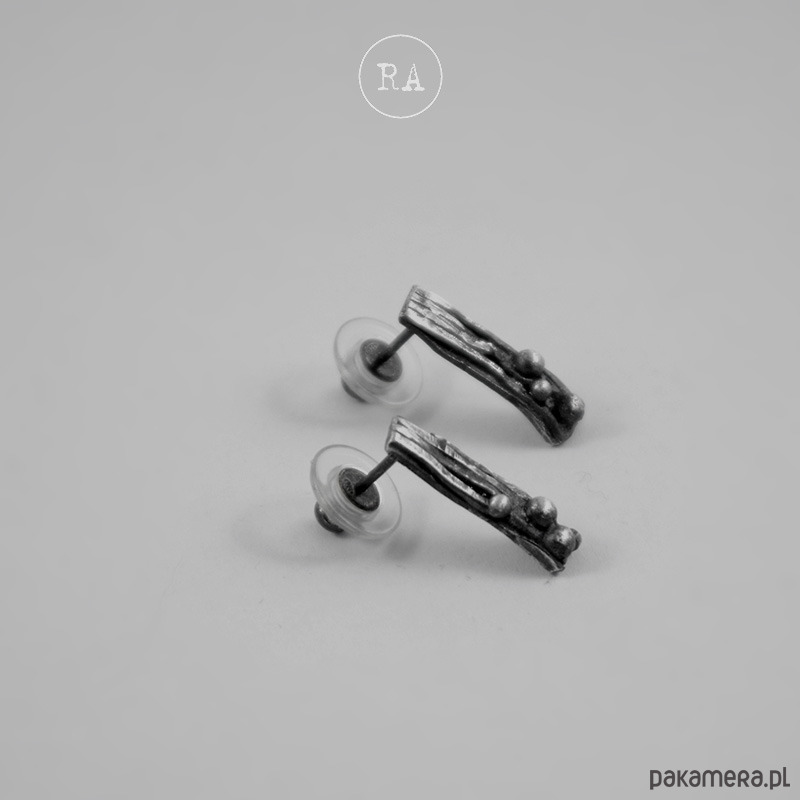 Kolczyki wykonane ręcznie - oksydowane srebro, sztyfty.