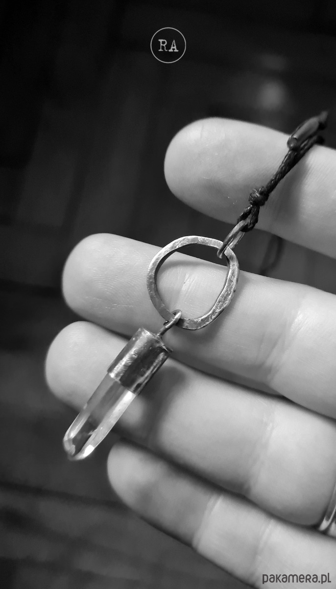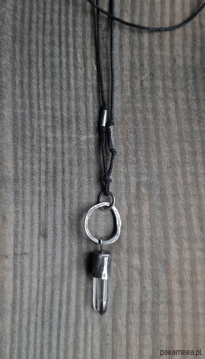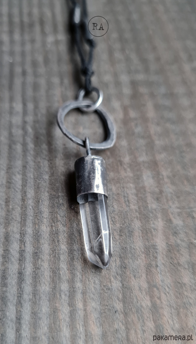 Wisior z naturalnym kryształem górskim, naszyjnik wykonany ręcznie, kryształ górski ok. 2 cm.