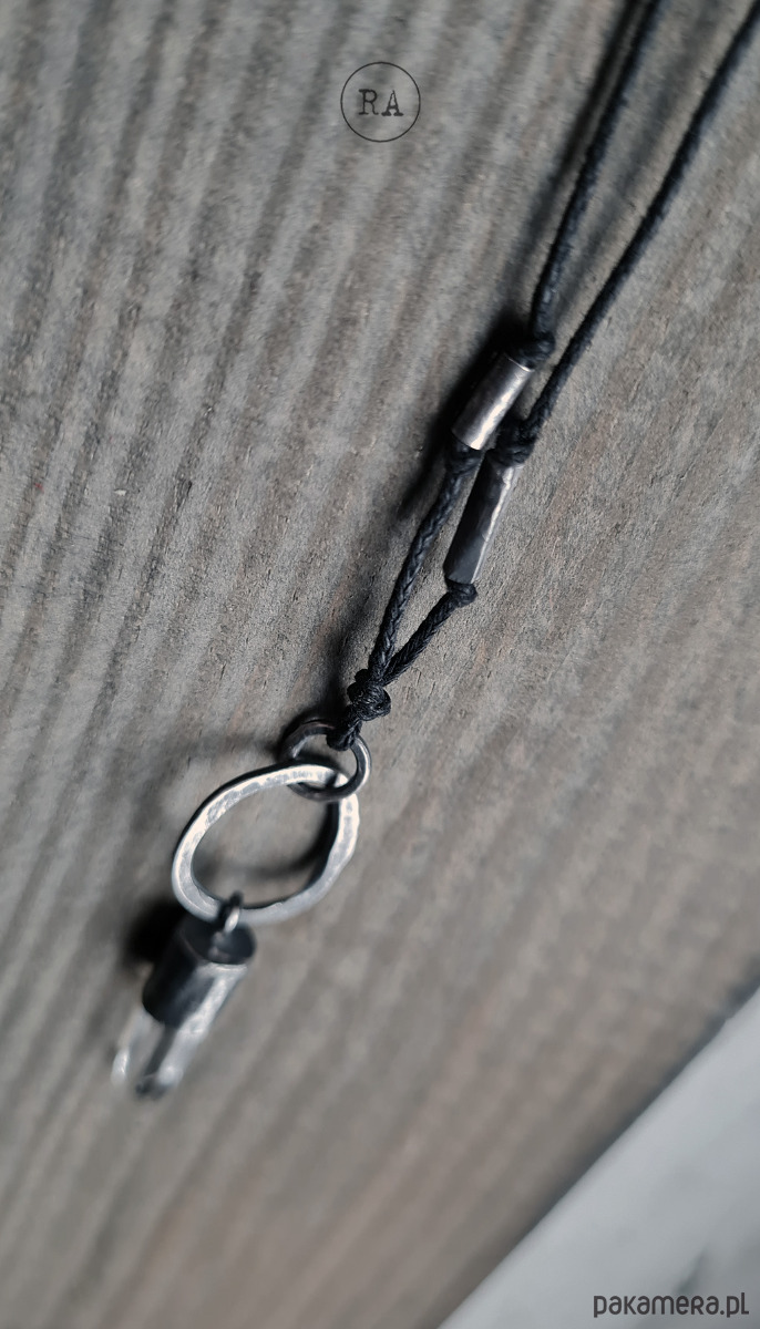 oprawa ze srebra, oksydowana. Sznurek ok. 100 cm.