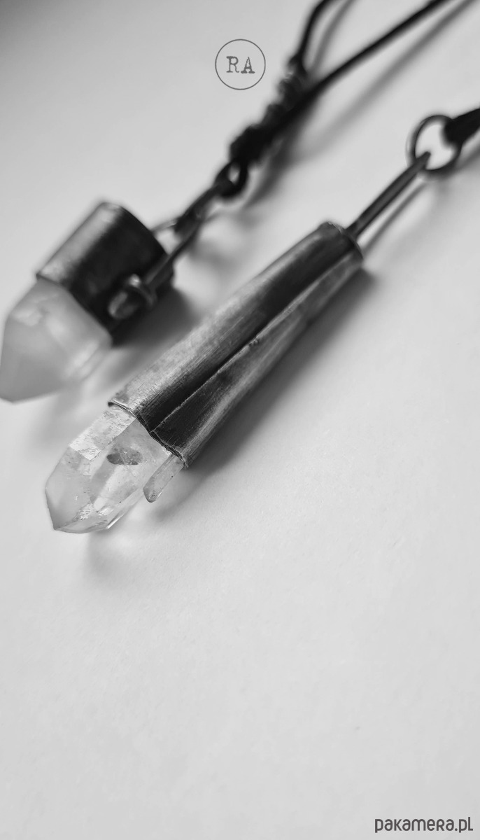 Wisior z naturalnym surowym kryształem górskim pochodzącym ze Śląska,