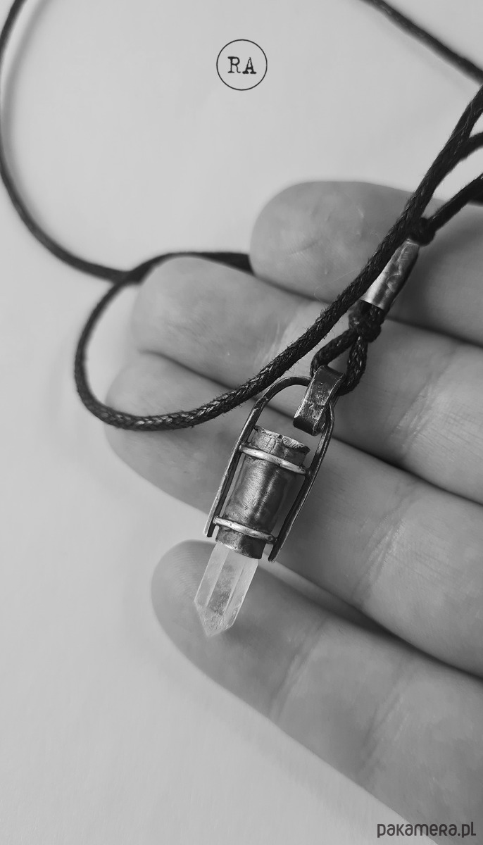 Wisior z naturalnym surowym kryształem górskim pochodzącym ze Śląska,