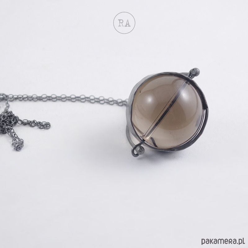 SREBRO Kwarc Dymny A232 - naszyjnik z kryształem