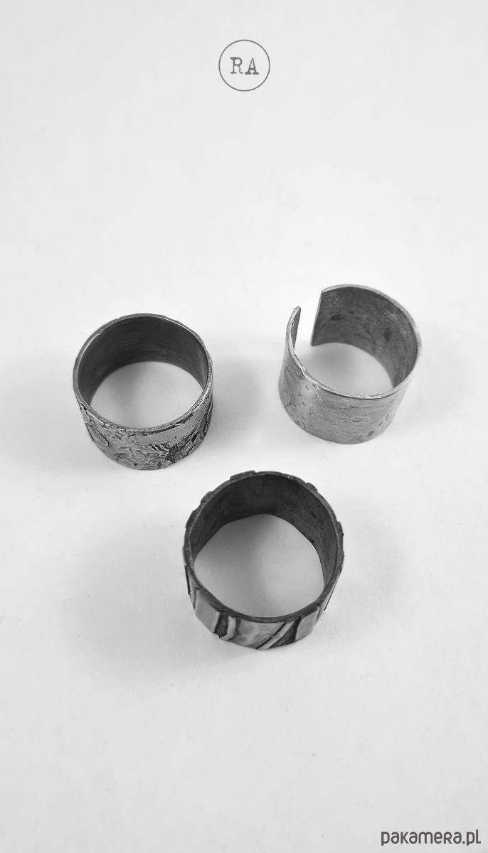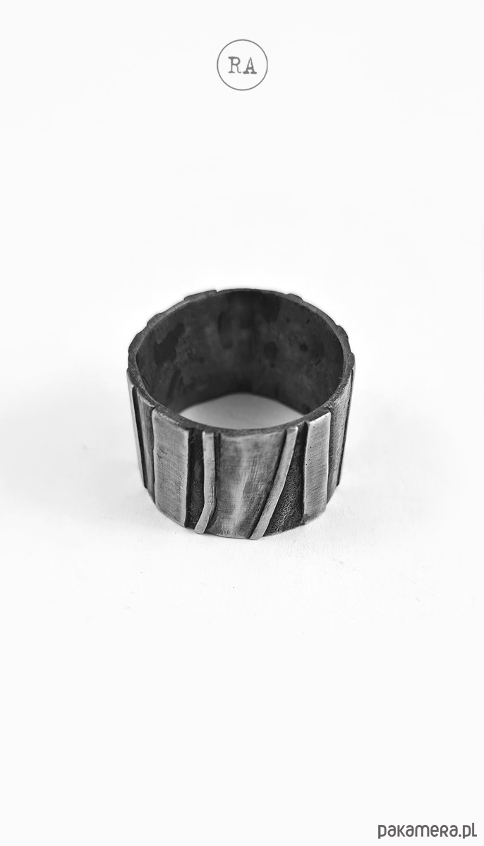 Duża masywna obrączka wykonana ze srebra, fakturowana, oksydowana,