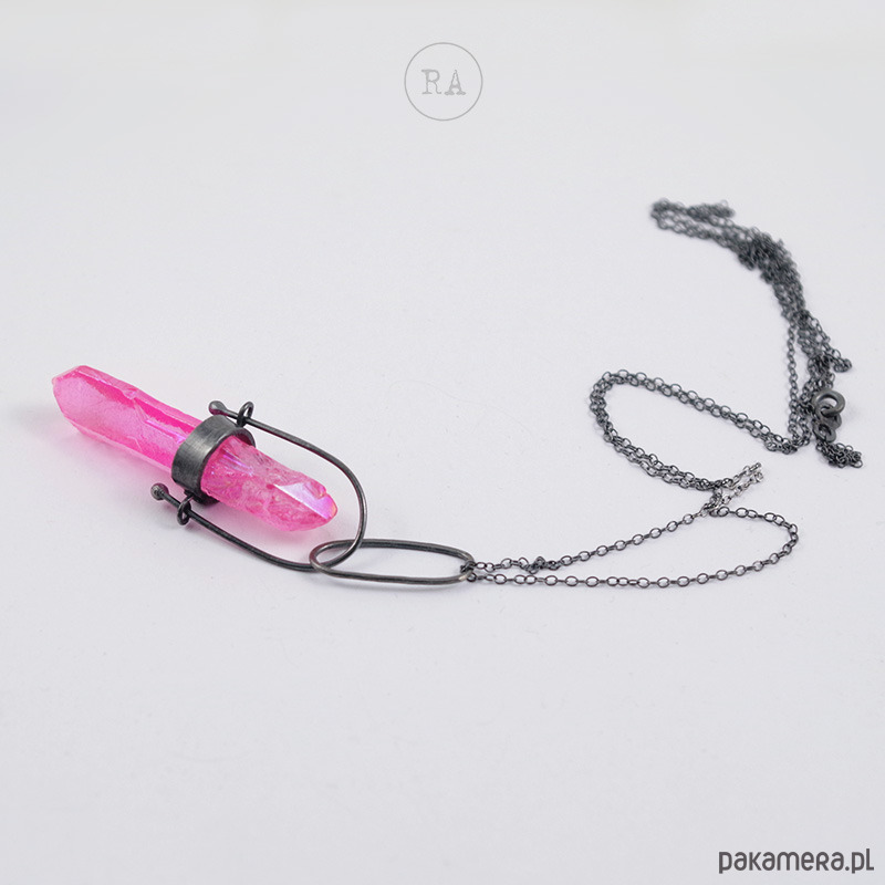 Naszyjnik ze srebra, oksydowany, z kryształem górskim "Pink Aura" - amulet i talizman dobrej energii :)