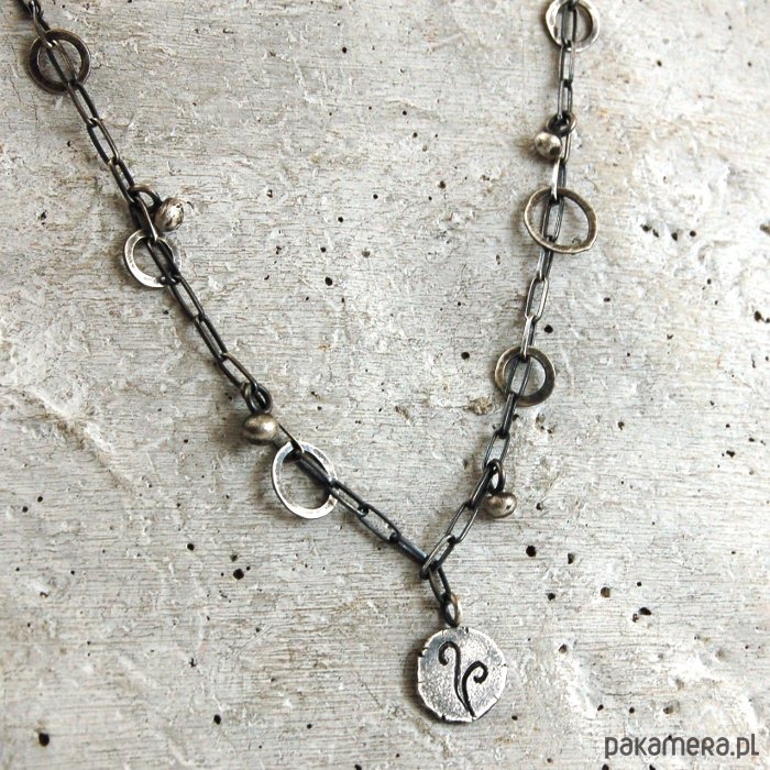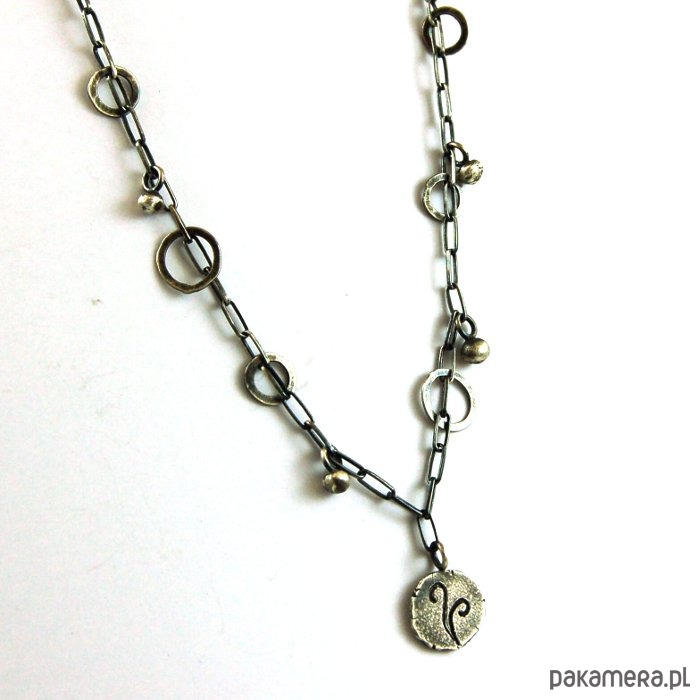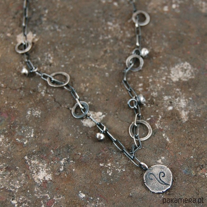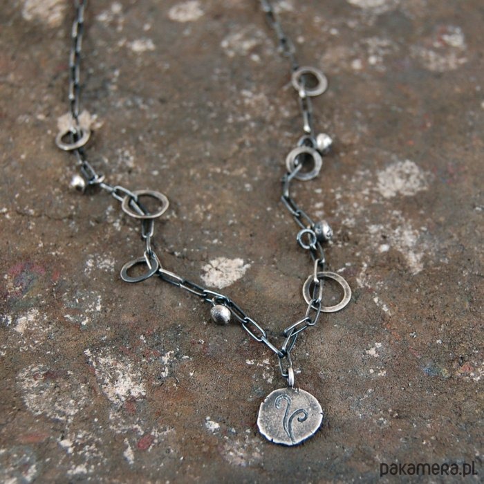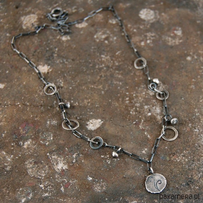 Delikatny naszyjnik z oksydowanego srebra. Średnica zawieszki ok. 1 cm. Długość naszyjnika 48 cm. Dostępne również inne wzory zawieszek (dwa ostatnie zdjęcia) - w komentarzu do zamówienia proszę o podanie wybranego numeru.