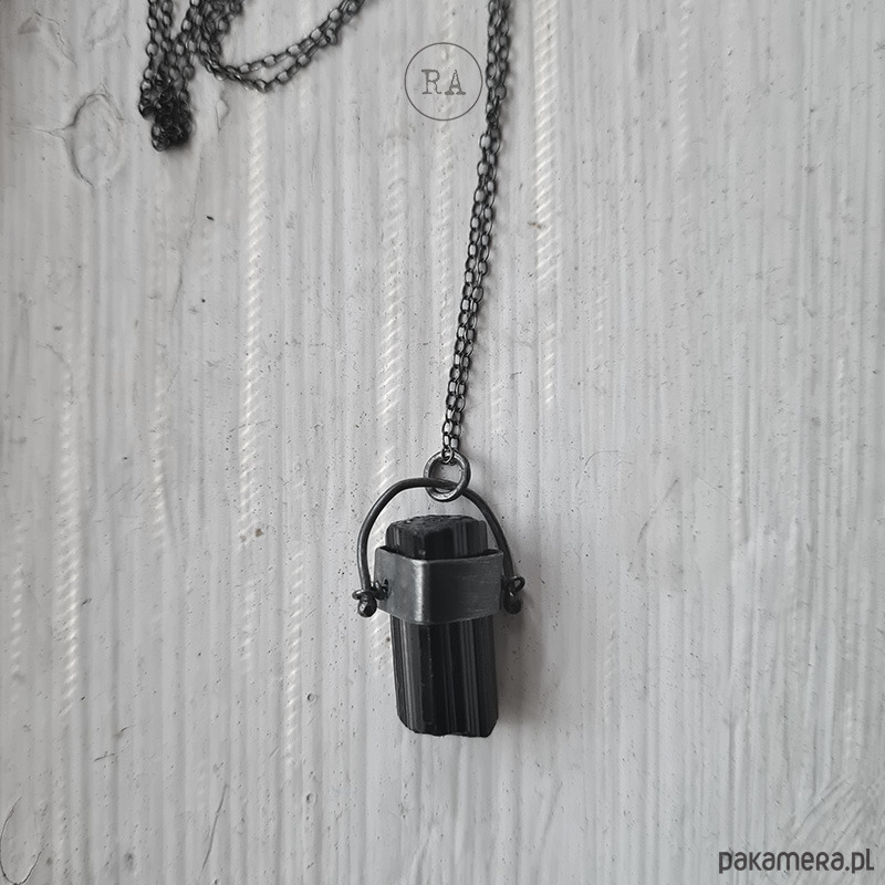 Naszyjnik wykonany ręcznie, kryształ turmalinu o nieregularnym kształcie ok. 2 cm,