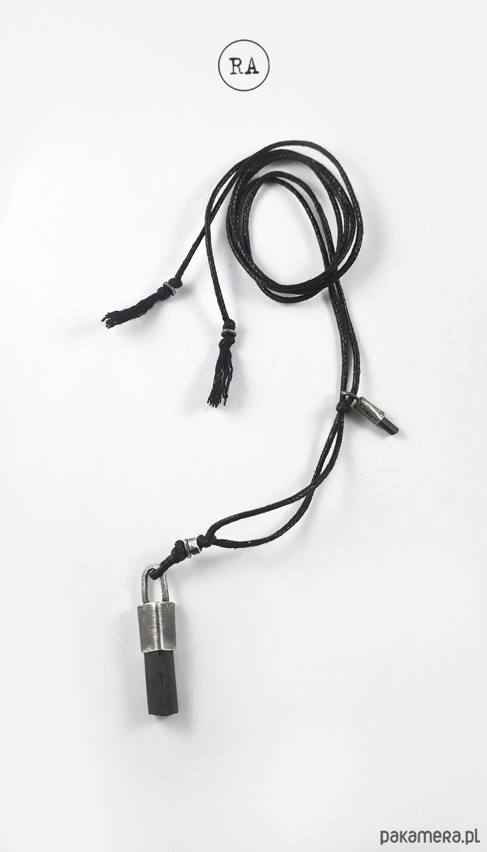 Naszyjnik wykonany ręcznie, dwa kryształy turmalinu o nieregularnym kształcie ok. 4 cm, 1,5 cm.