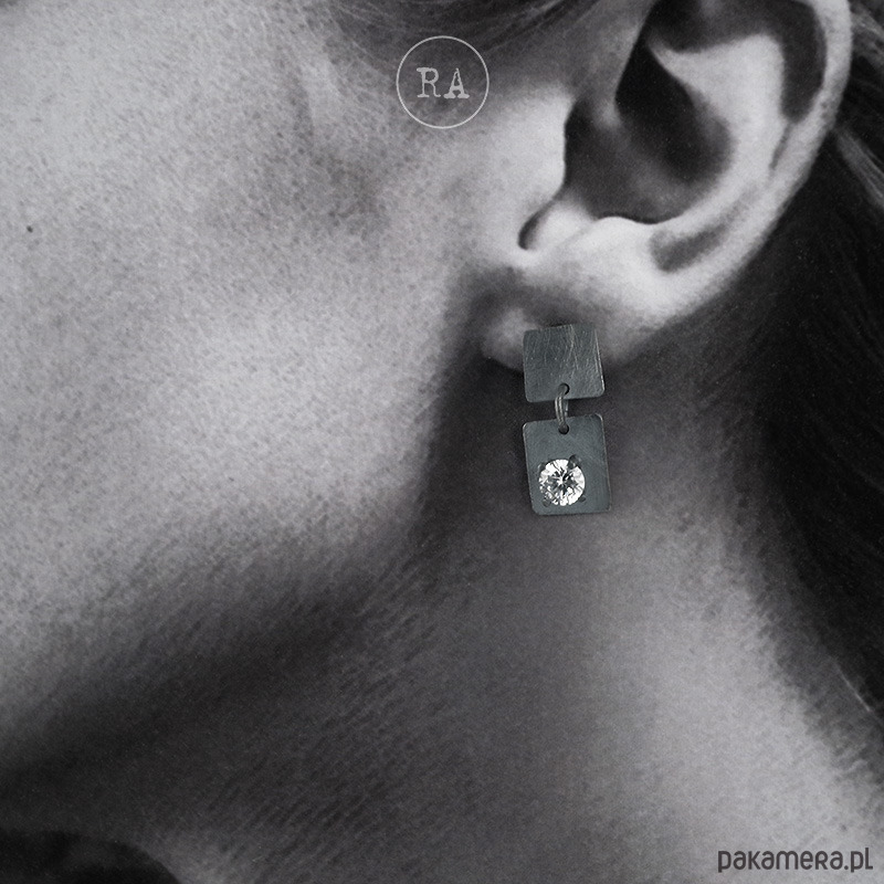 Srebro z cyrkonią - kolczyki SHINE oksydowane