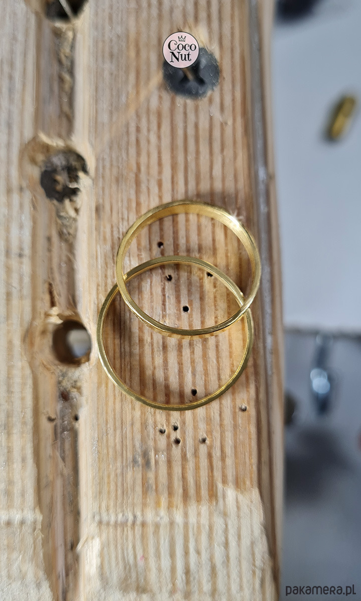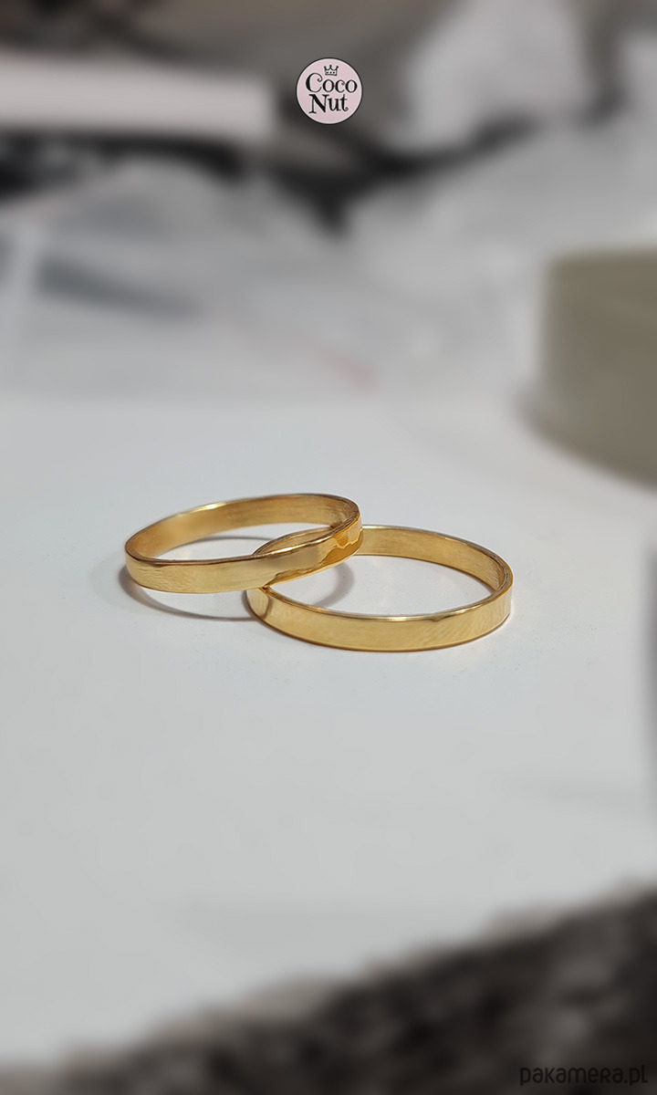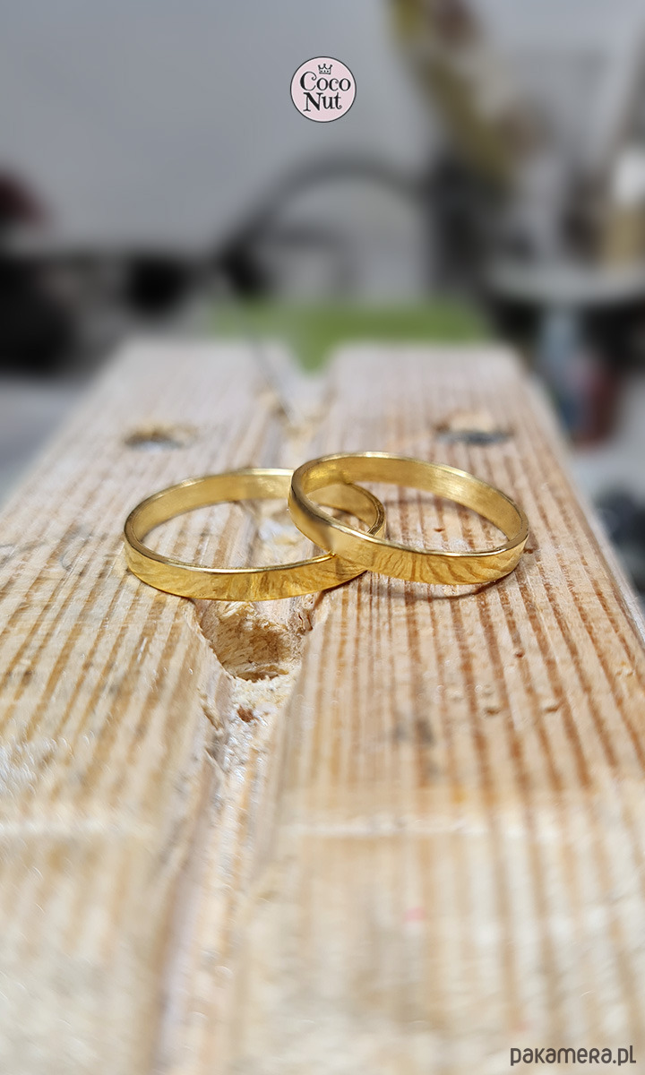Dwie obrączki ze srebra pokrytego cienką warstwą złota,