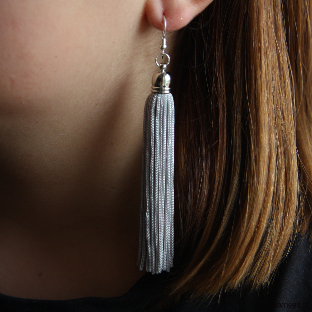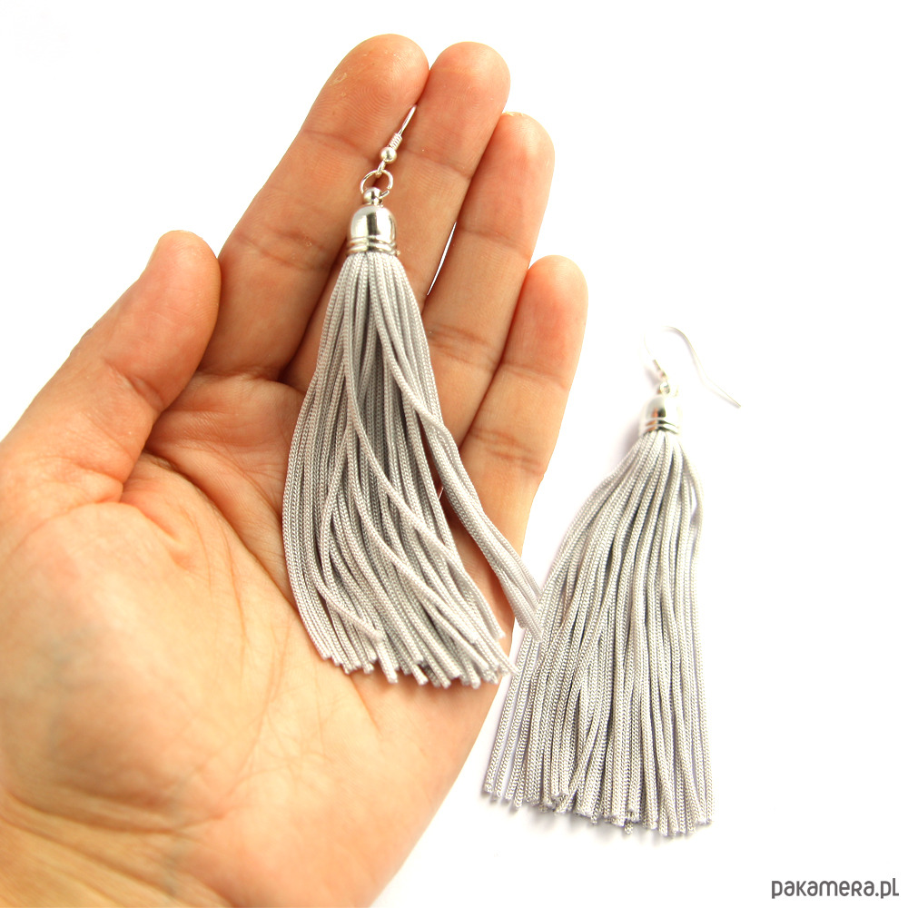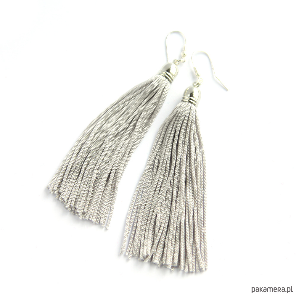 Srebrzyste kolczyki chwosty frędzle