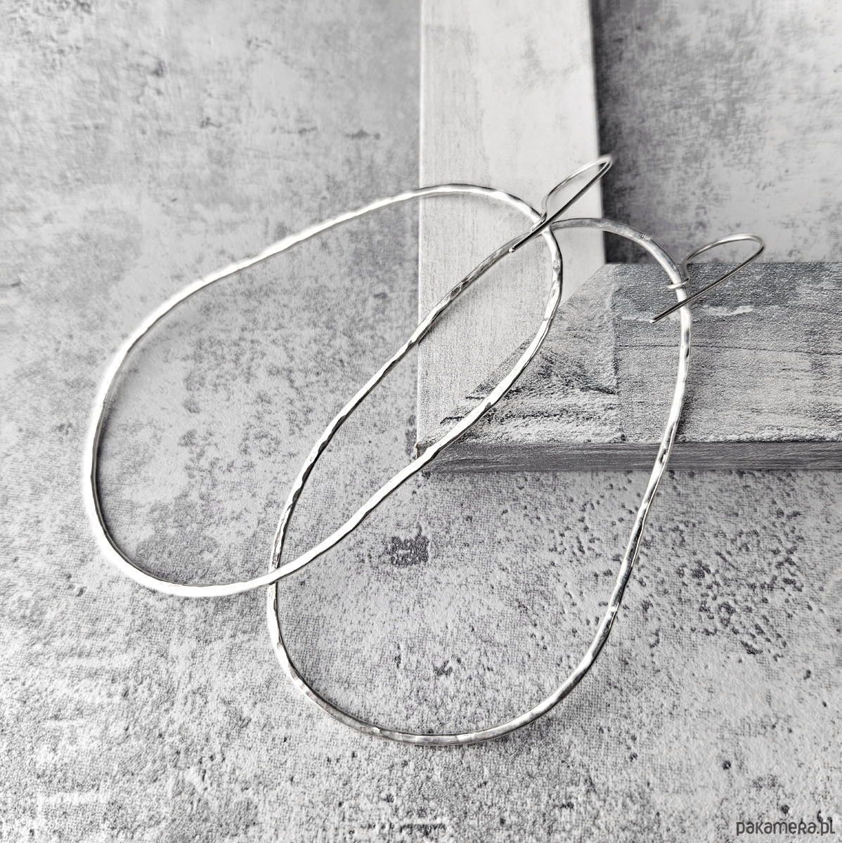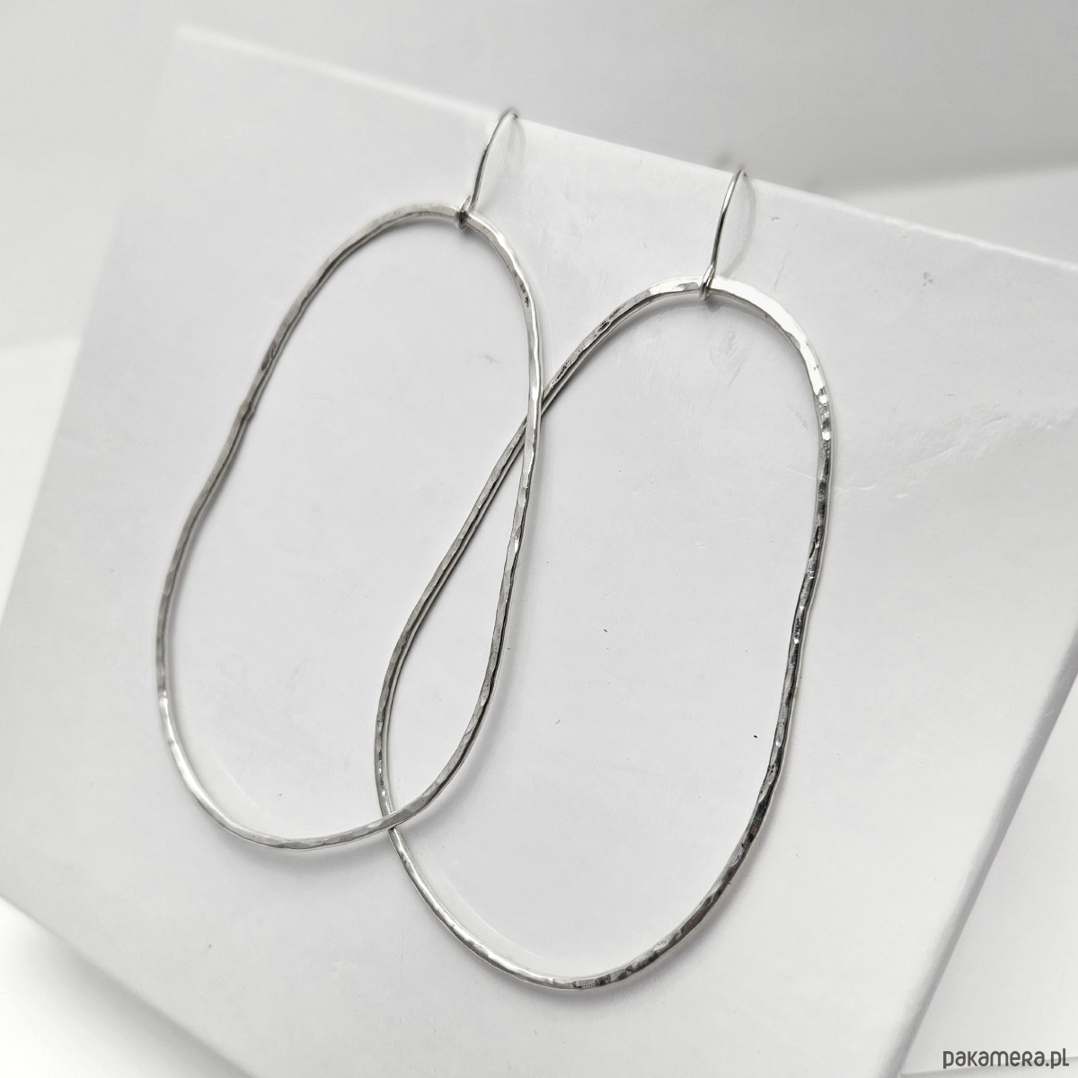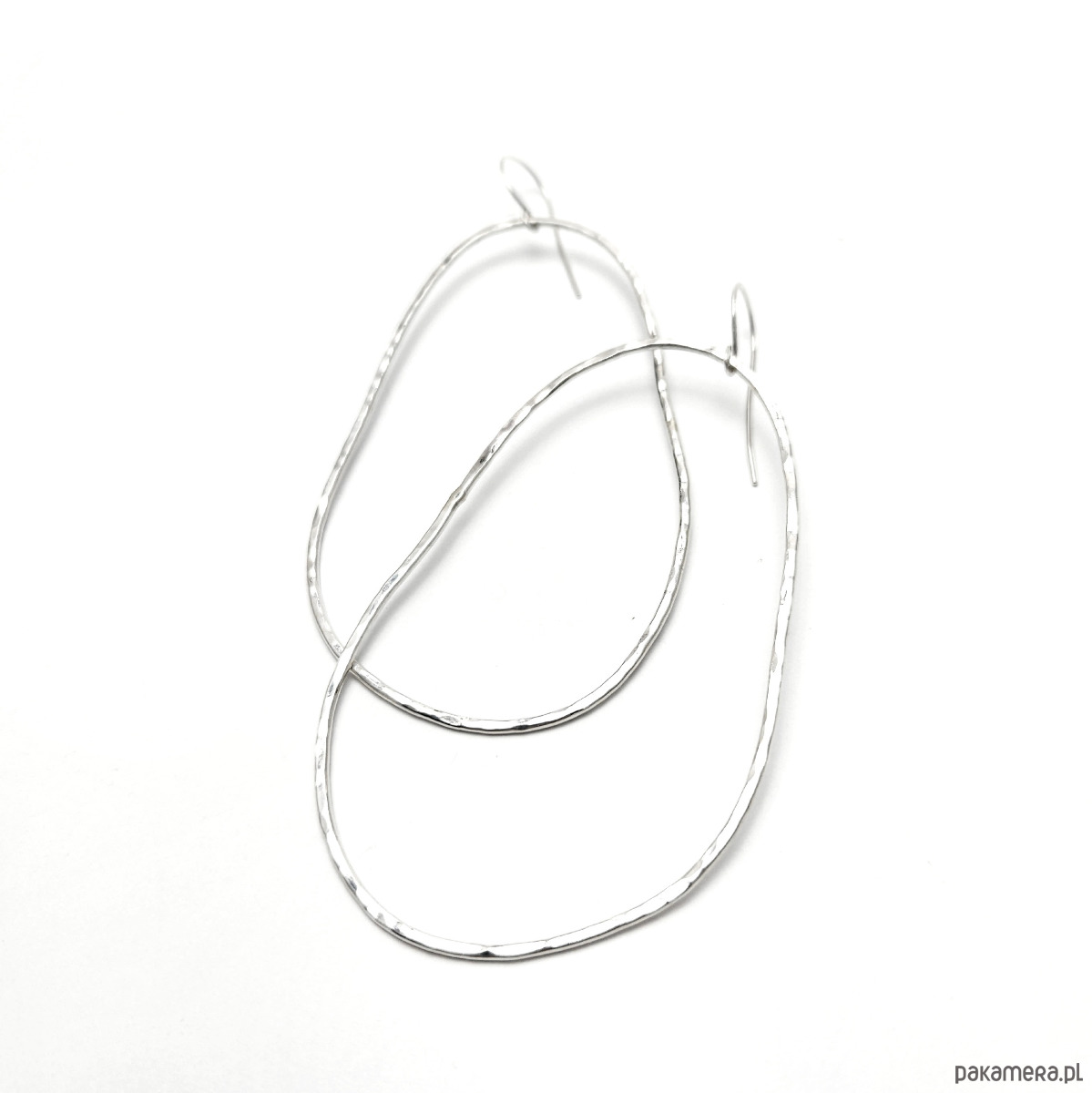 Kolczyki wykonałam ze srebra próby 925, wykończyłam fakturą młotkowaną, która podkreśla wypolerowana na błysk powierzchnię..