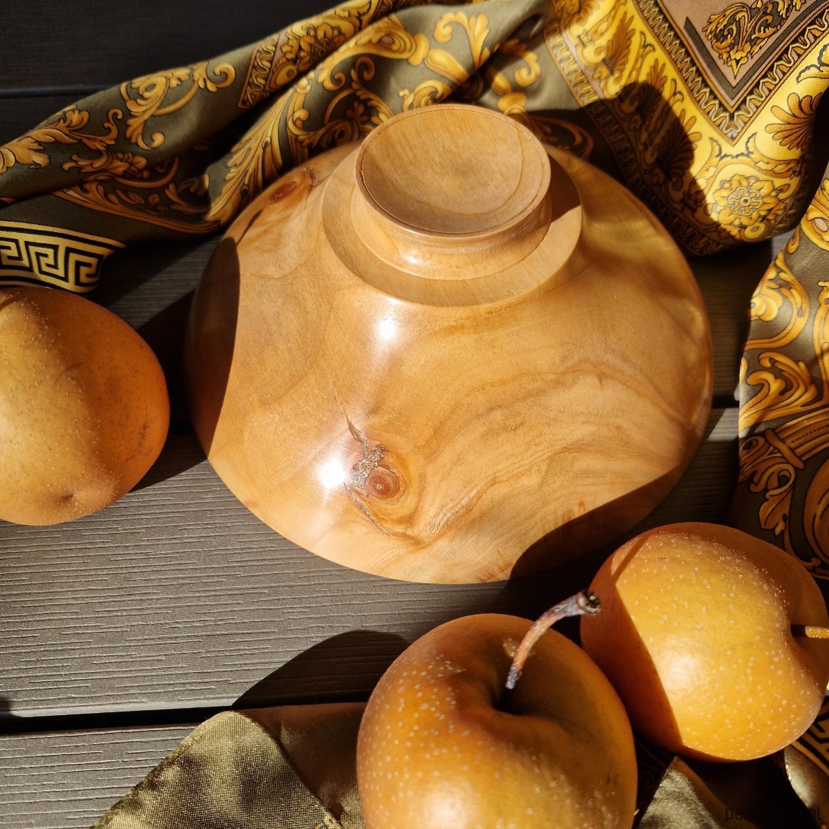 Każdy egzemplarz jest indywidualnie toczony na tokarce i wykańczany ręcznie. Naturalne różnice w usłojeniu, kolorze i kształcie sprawiają, że każda misa jest absolutnie jedyna w swoim rodzaju.