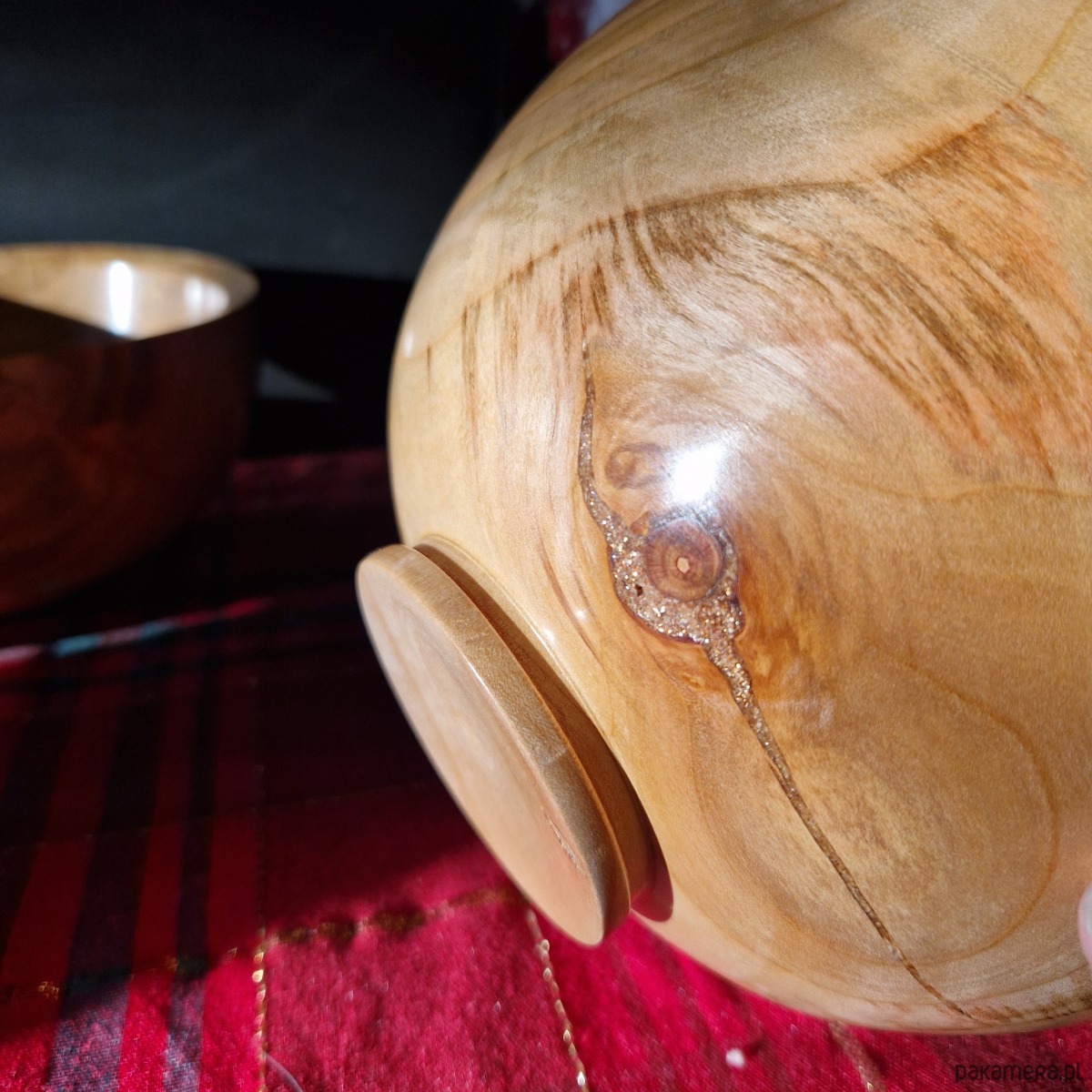 Każda misa jest indywidualnie toczona na tokarce i wykańczana ręcznie. Naturalne różnice w usłojeniu, tonacji oraz unikalnych detalach kintsugi sprawiają, że każdy egzemplarz jest absolutnie jedyny w swoim rodzaju.