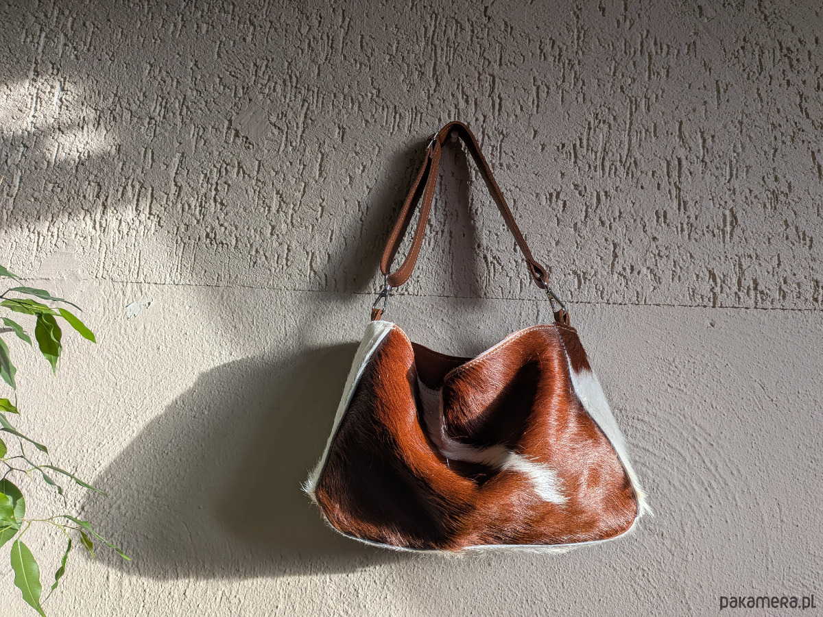 Średniej wielkości torebka ze skóry naturalnej z włosem