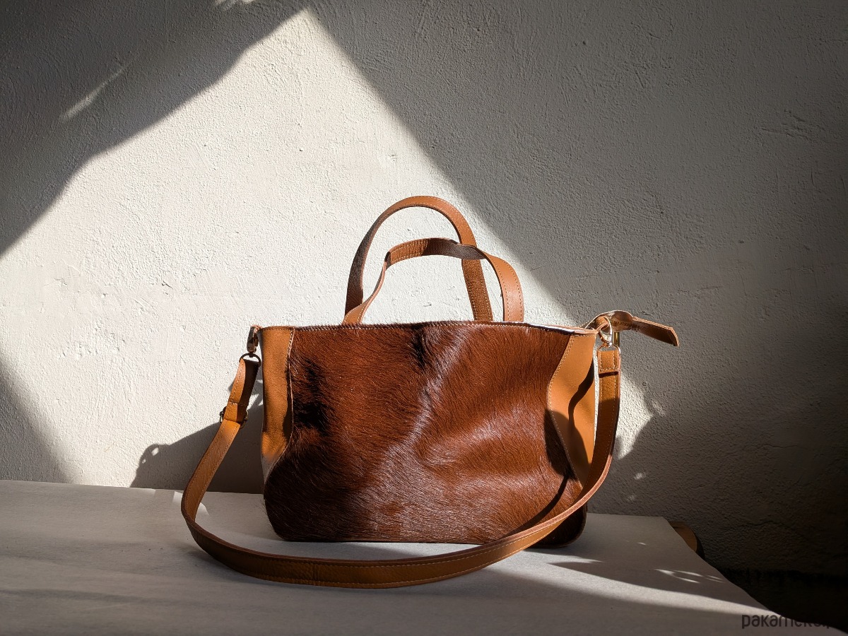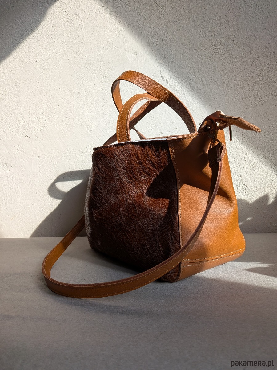 Średniej wielkości torebka ze skóry naturalnej z włosem