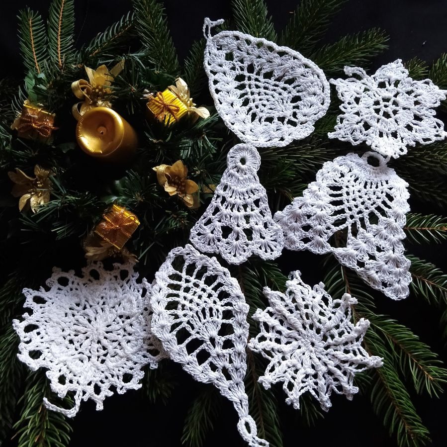 Piękne śnieżynki szydełkowe wykonane z białego bawełnianego kordonku .W zestawie7 szt. Zapakowane w kartonowym pudełku