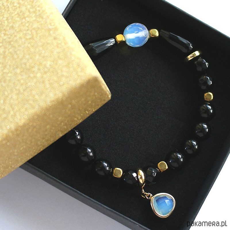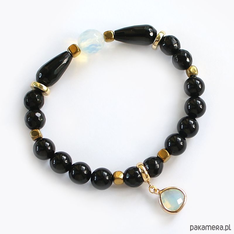 Energetyczna bransoletka z fasetowanym onyksem, czarnym turmalinem, opalitem i hematytami, wspierająca uzdrawianie wzorca poczucia stabilności, łagodnego odnalezienia spokoju i wewnętrznej równowagi w warunkach intensywności zdarzeń Oczyszczona, zregenerowana, napełniona energią czystego światła o najwyższej wibracji. ❤