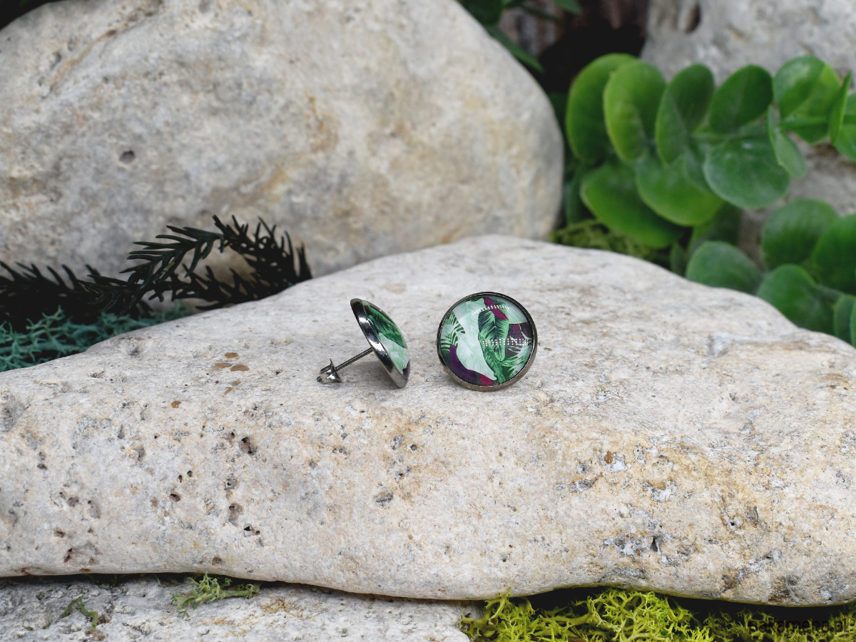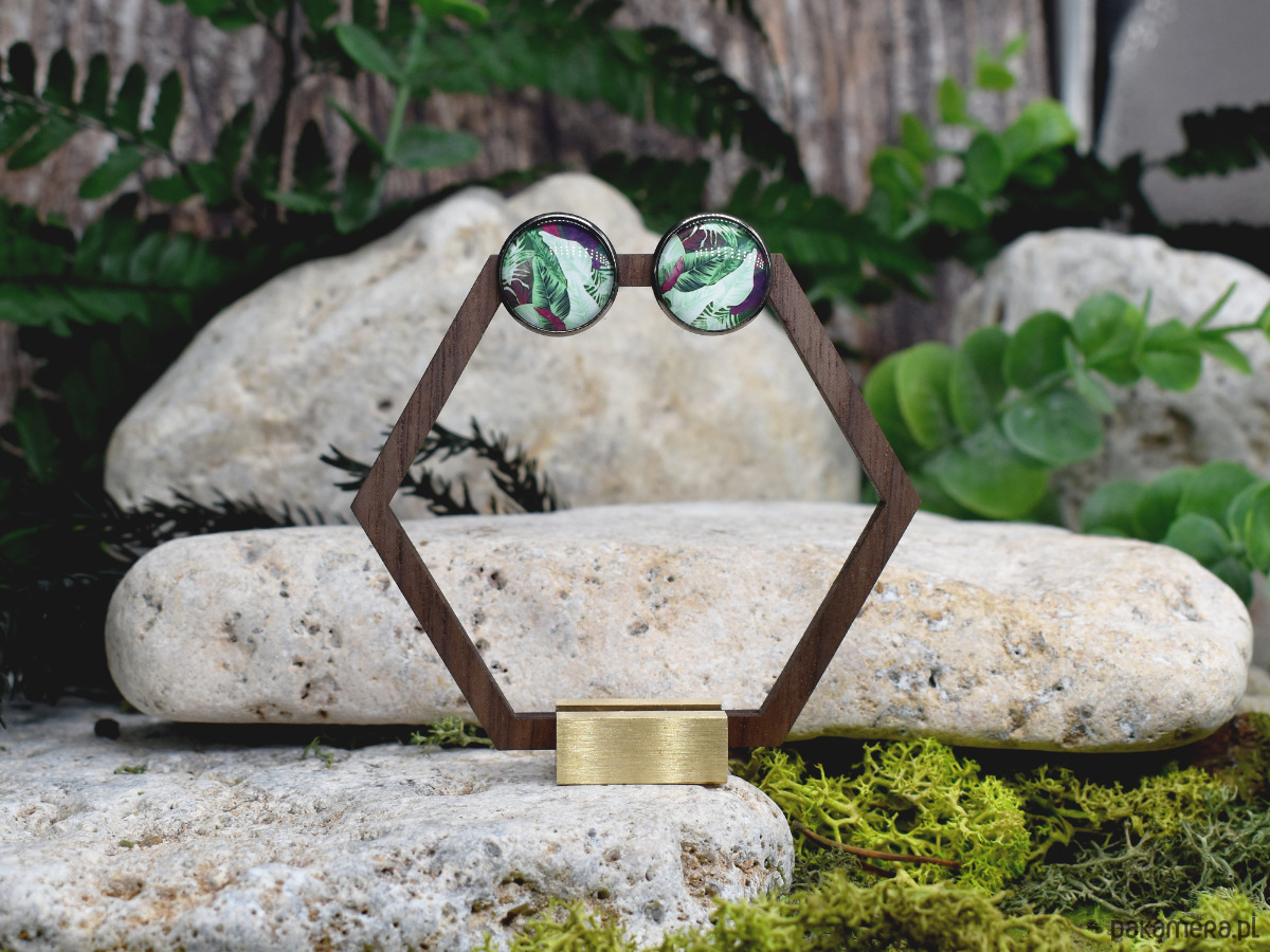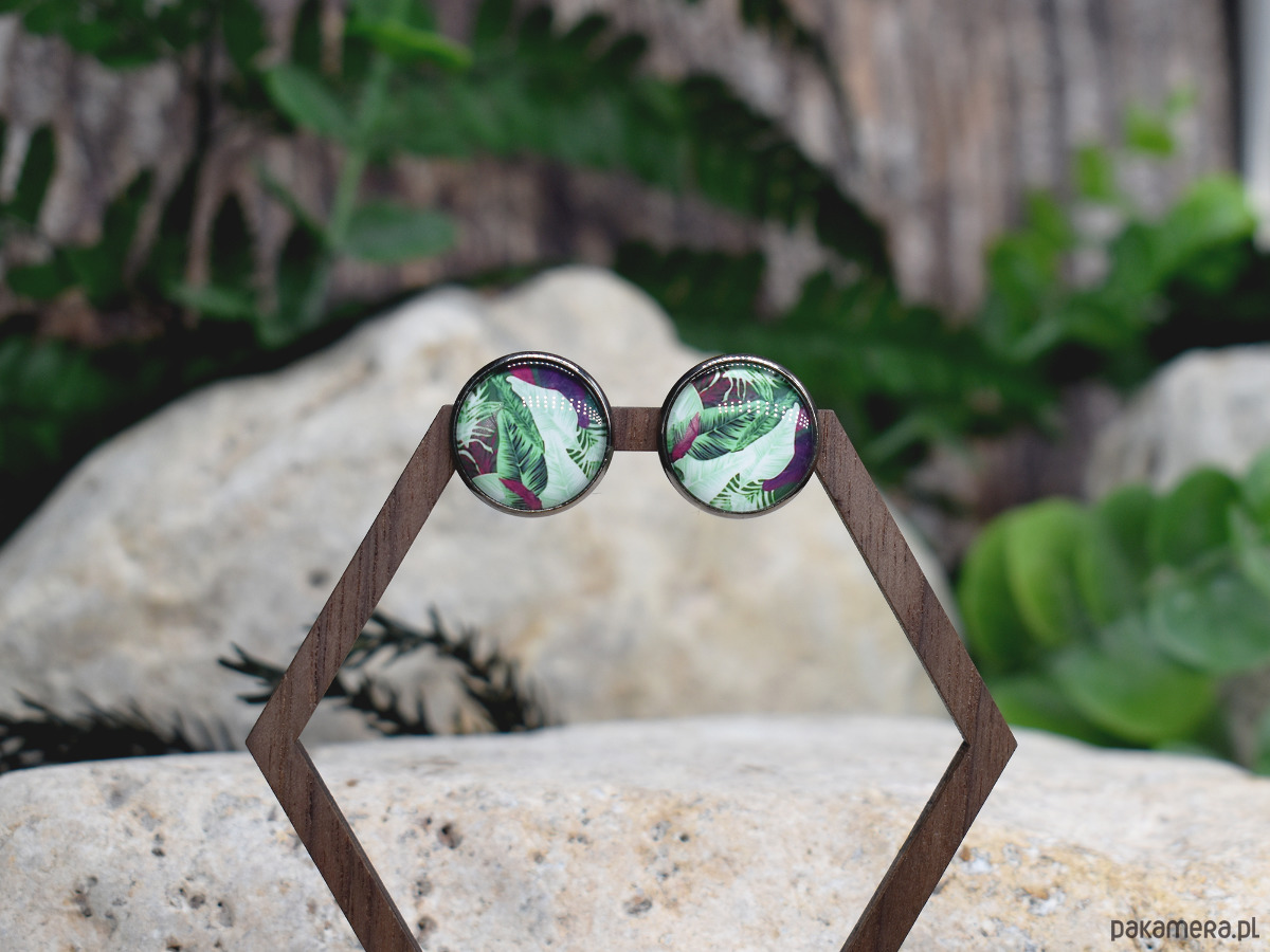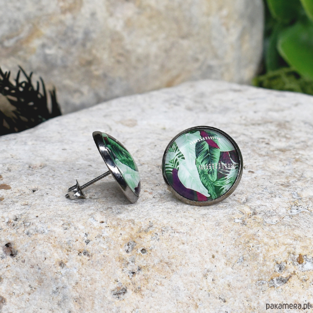 Stalowe kolczyki wkrętki grafika wzorek / tropiki, liście