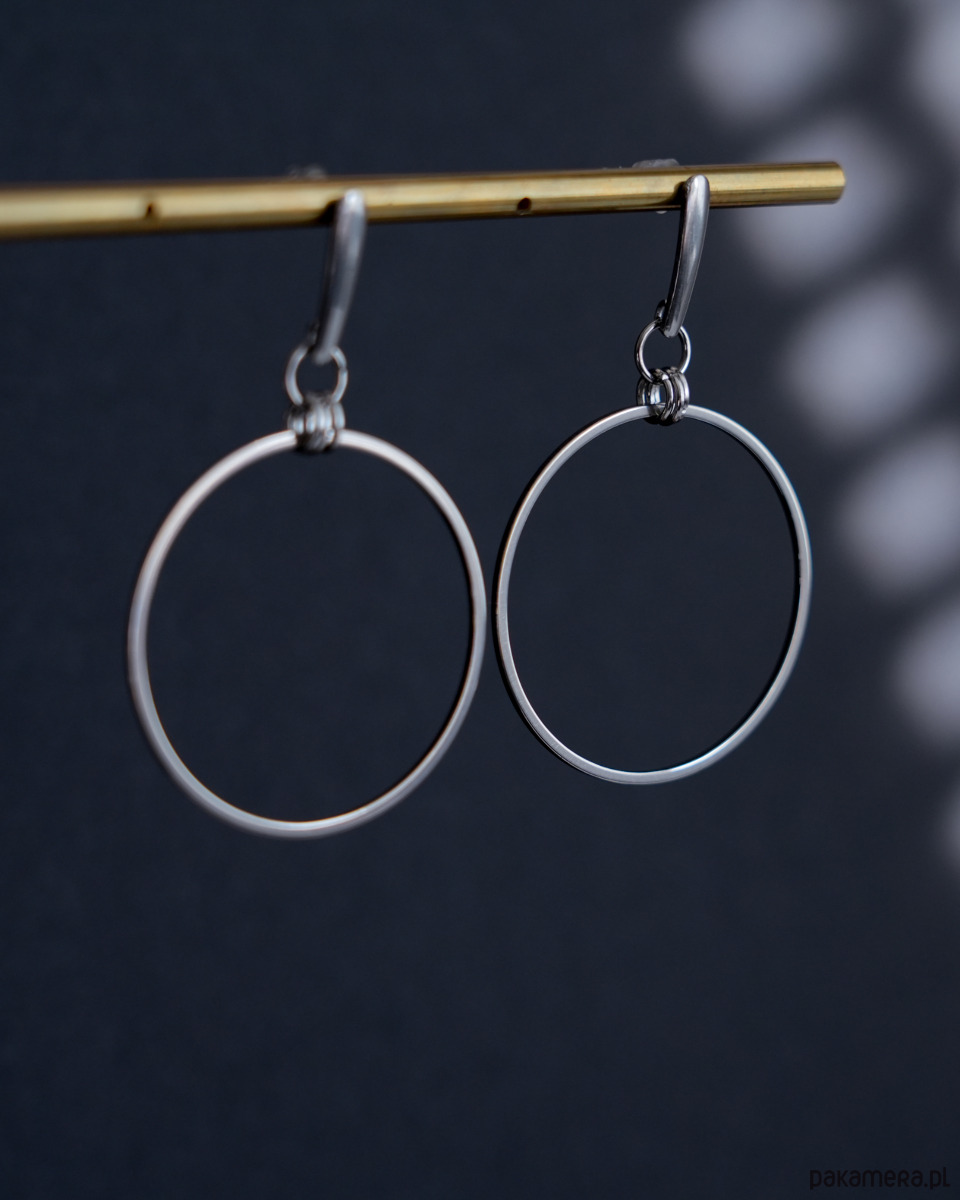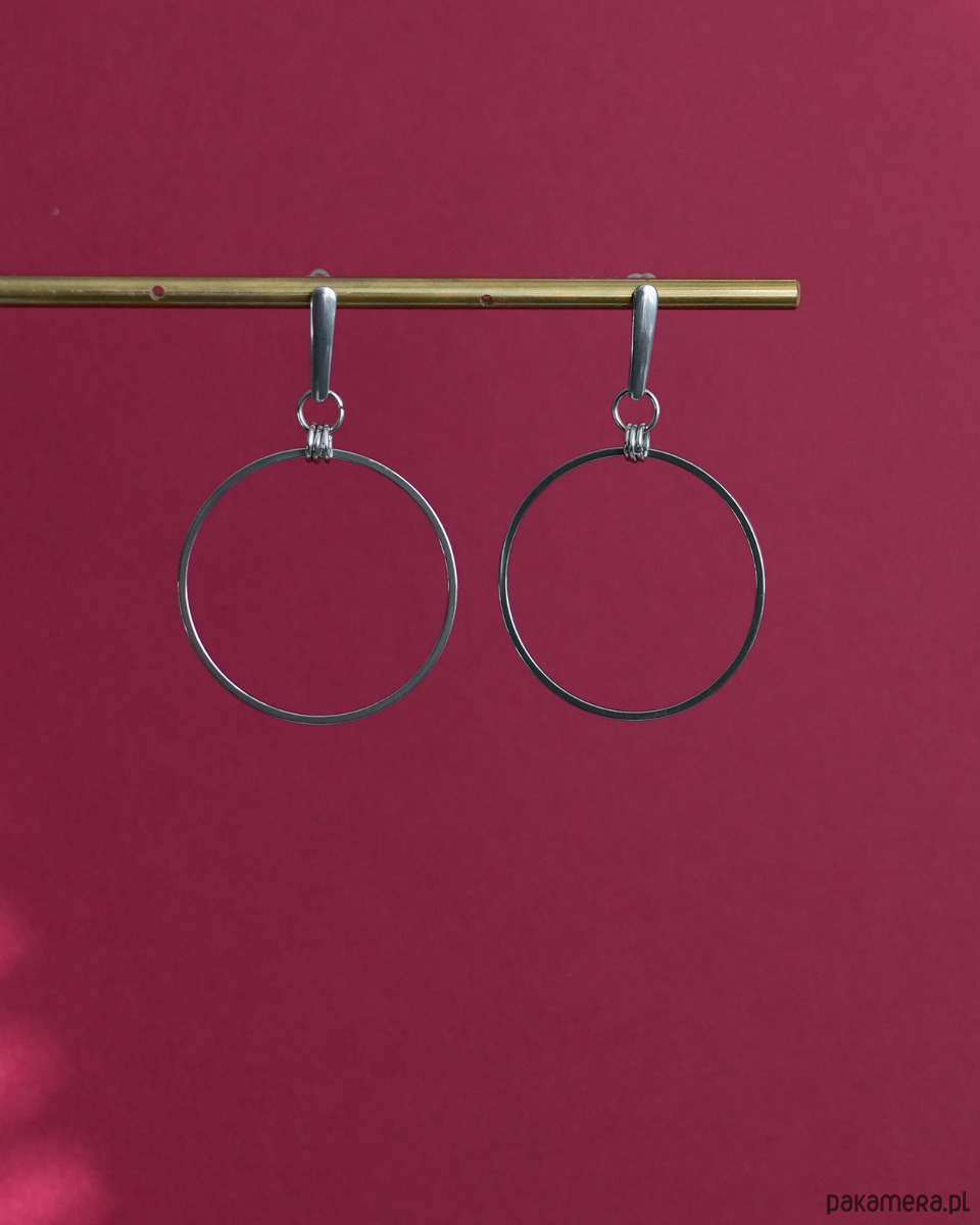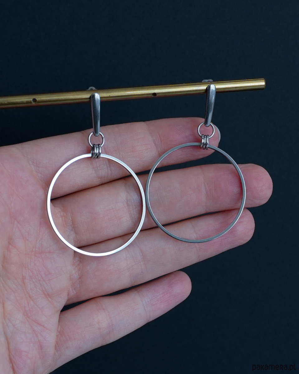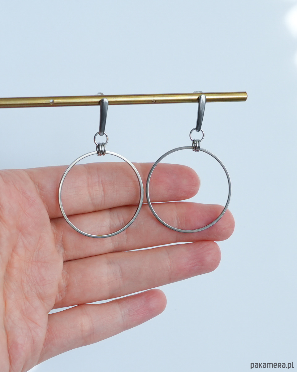 Duże i nowoczesne kolczyki z dużymi kołami, w całości wykonane ze STALI SZLACHETNEJ.