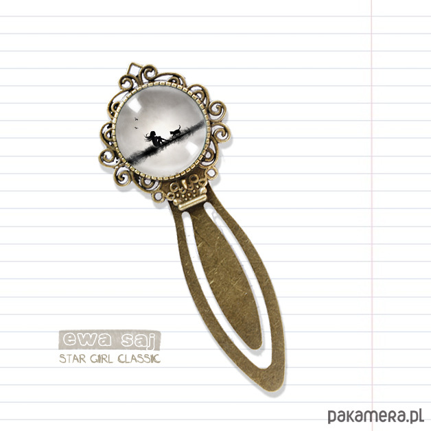 Romantyczna, elegancka zakładka idealna do książek oraz do spinania wyjątkowych dokumentów, Wykonana z metalu w kolorze antycznego złota, ozdobiona miniaturką mojej grafiki, która niczym sekret ukryta została pod szklaną kopułą przeźroczystego szkiełka. Długość zakładki 8 cm. wielkość graficznej miniatury 20 mm. Copyright Ewa Saj. Wszystkie prawa zastrzeżone.