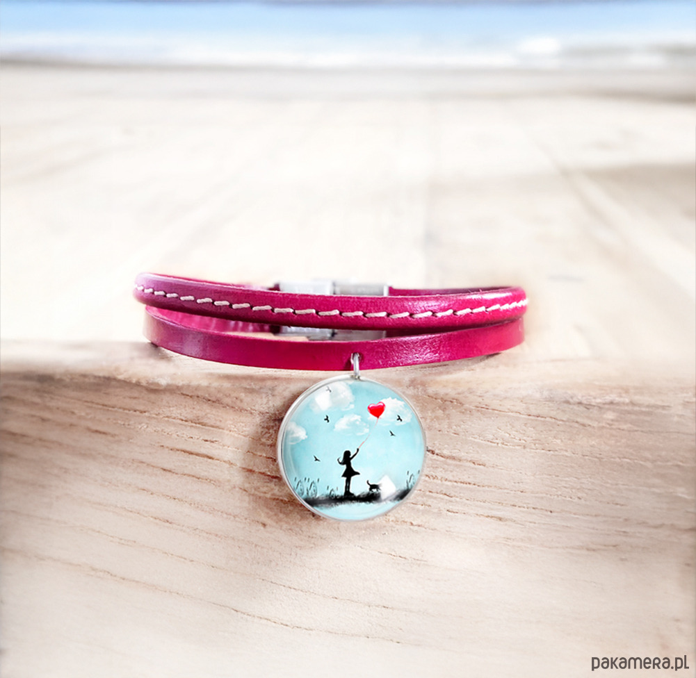 Prosta, wygodna, modna, kobieca bransoletka ze skóry naturalnej,