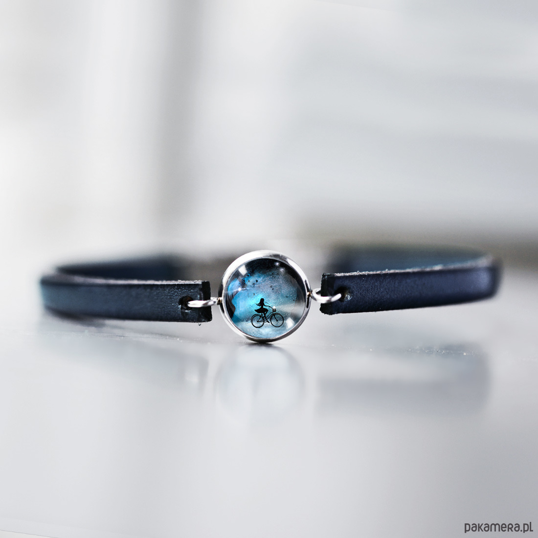 Oryginalna delikatna, kobieca bransoletka z kolekcji Star Girlt. Grafika została ukryta pod 10 mm wypukłym szkiełkiem. Pasek w kolorze granatowym ma szerokość 5 mm, dodatki ze stali nierdzewnej. Idealna na nadgarstek 14,5 - 15,5 cm. Zrób sobie prezent! Wolny od niklu i ołowiu - antyalergiczny. copyright Ewa Saj. All Rights Reserved.