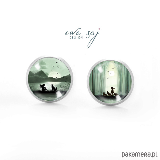 Malutkie, pełne czaru, oryginalne, zaczarowane, romantyczne kolczyki-wkręty. Miniaturki moich grafik zmniejszone do wymiaru 10 mm ukryłam pod szklaną kopułą organicznego szkiełka. Baza w kolorze srebra wykonana ze stali nierdzewnej. Średnica kolczyka 12 mm. Wolne od niklu i ołowiu - antyalergiczne. copyright Ewa Saj. All Right reserved.