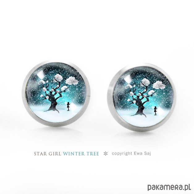 Malutkie, pełne czaru, oryginalne, zaczarowane, romantyczne kolczyki-wkręty . Miniaturki moich grafik zmniejszone do wymiaru 10 mm. Ukryłam je niczym maleńki sekret pod szklaną kopułą organicznego szkiełka. Baza kolczyka wykonana jest ze stali chirurgicznej.