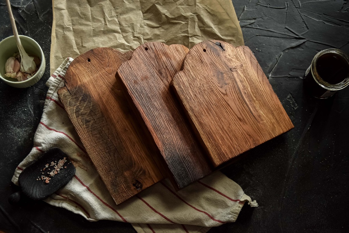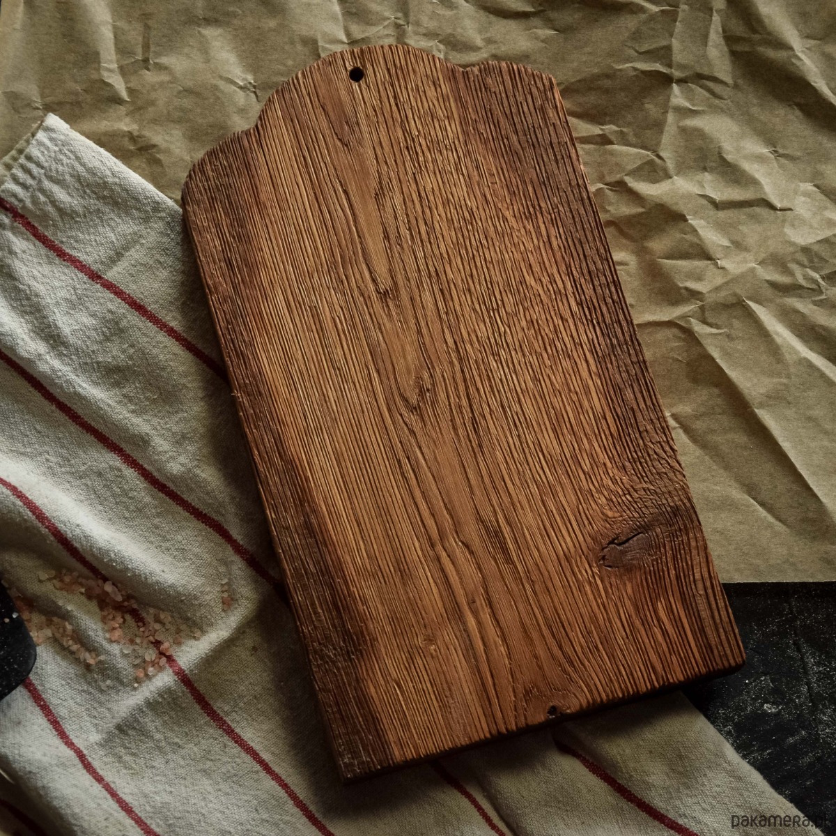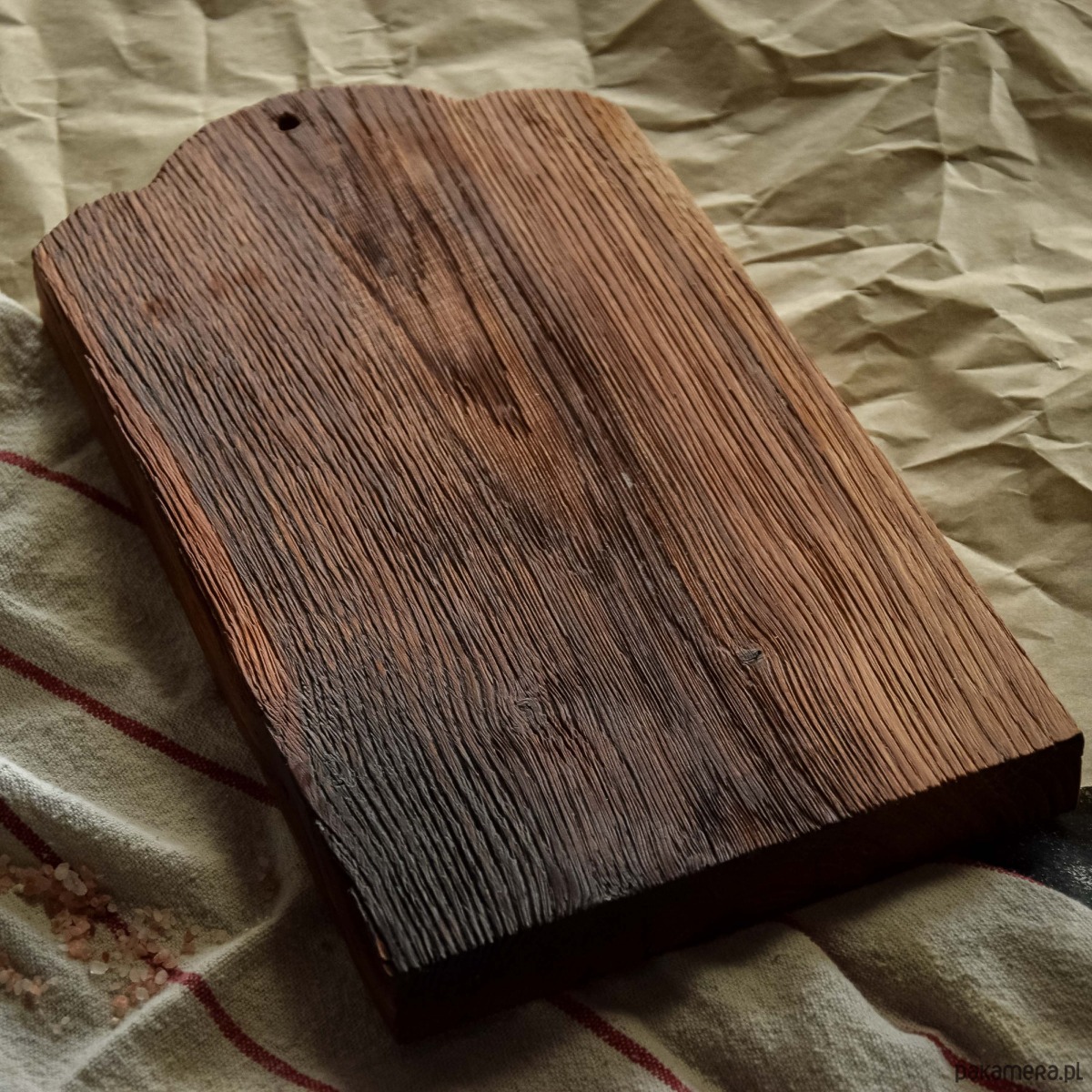 Ręcznie wykonana deska dębowa o wymiarach 30 x 17 cm to doskonały wybór zarówno do krojenia, jak i serwowania.