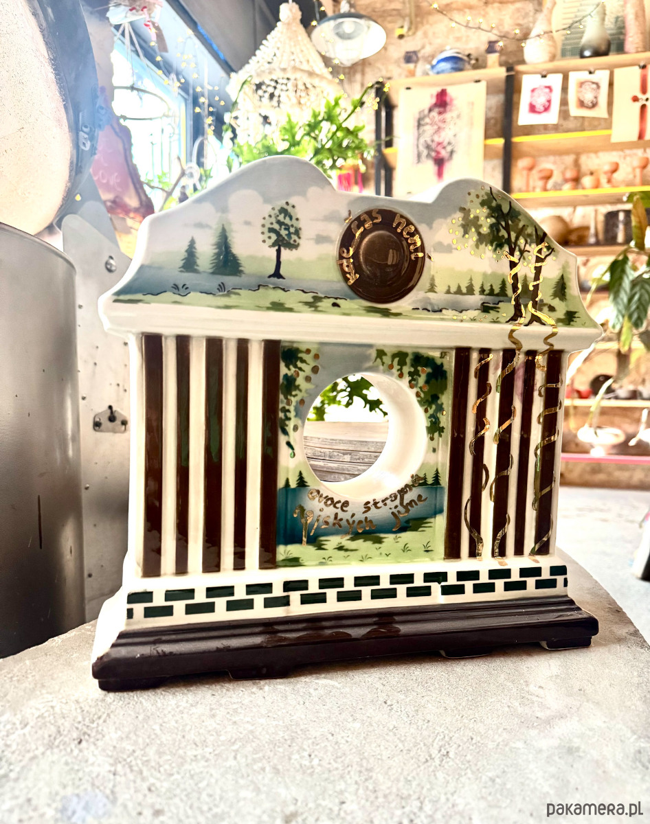 Stary ceramiczny zegar, z którego usunięta została dusza mechanizmu
