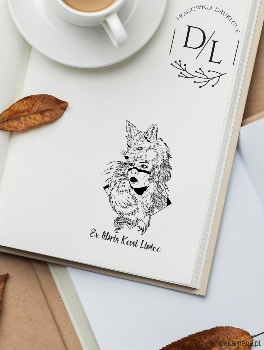 Stempel Ex Libris Exlibris personalizowany Kobieta Wilk
