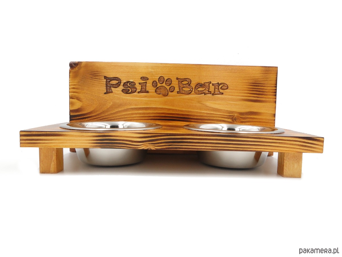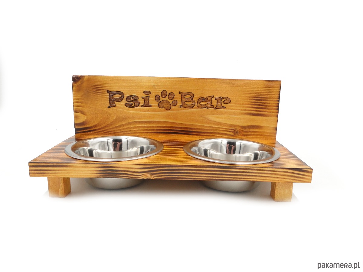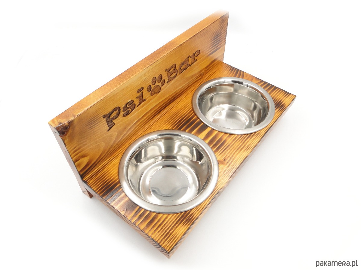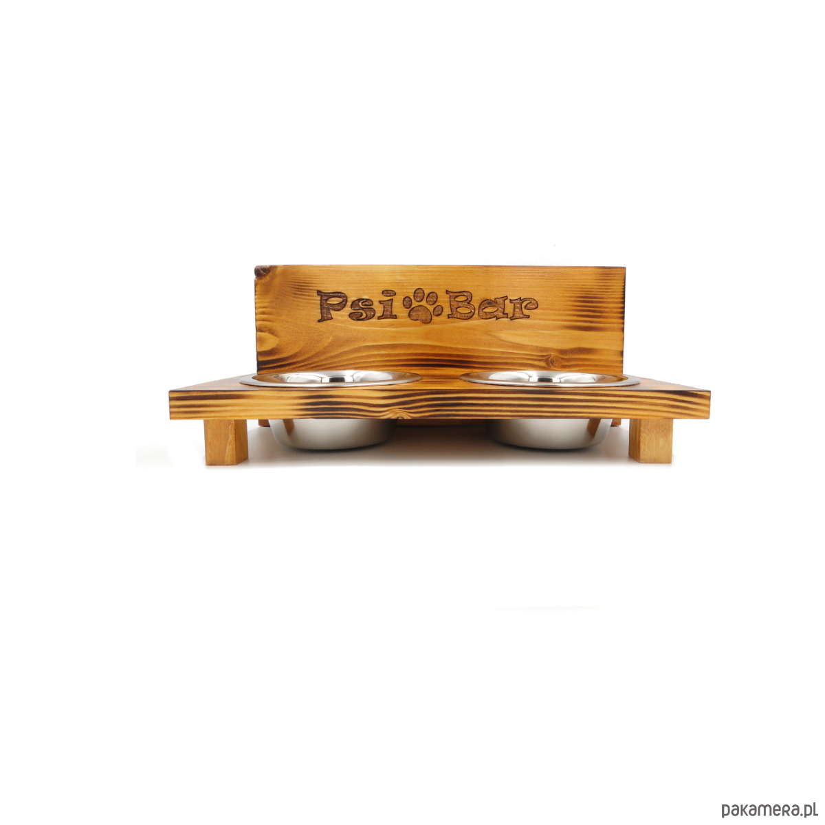 Stojak drewniany bar dla psa na miski 2 x 0,4 litra