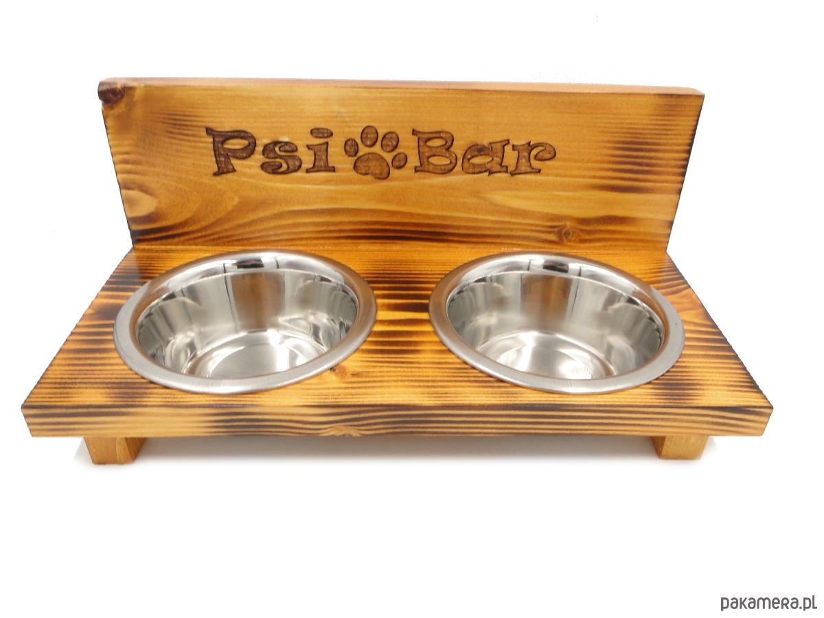 Bar drewniany z dwoma miskami 0,4 litra w zestawie