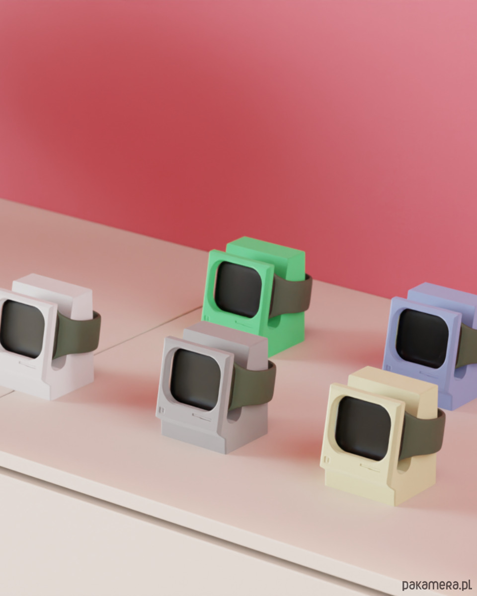 Stojak CLASSIC to minimalistyczna stacja ładująca, inspirowana sylwetką kultowego komputera z lat 80. Jego precyzyjna, geometryczna bryła w sprytny sposób zamienia ekran smartwatcha w miniaturowy, retro monitor