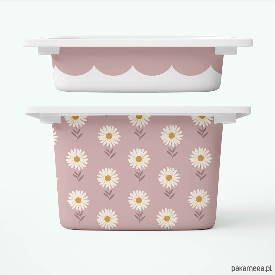 Stokrotki zgaszony róż + falbanka - naklejki na pojemniki na zabawki