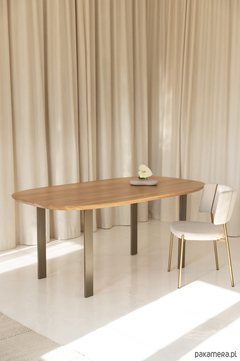 Stół dębowy Manhattan to idealne rozwiązanie dla miłośników nowoczesnego designu, którzy cenią naturalność i solidność. Blat wykonany z litego drewna dębowego o grubości 4 cm zachwyca pięknym usłojeniem i trwałością, a stalowe nogi malowane proszkowo nadają stołu nowoczesny, elegancki charakter.
