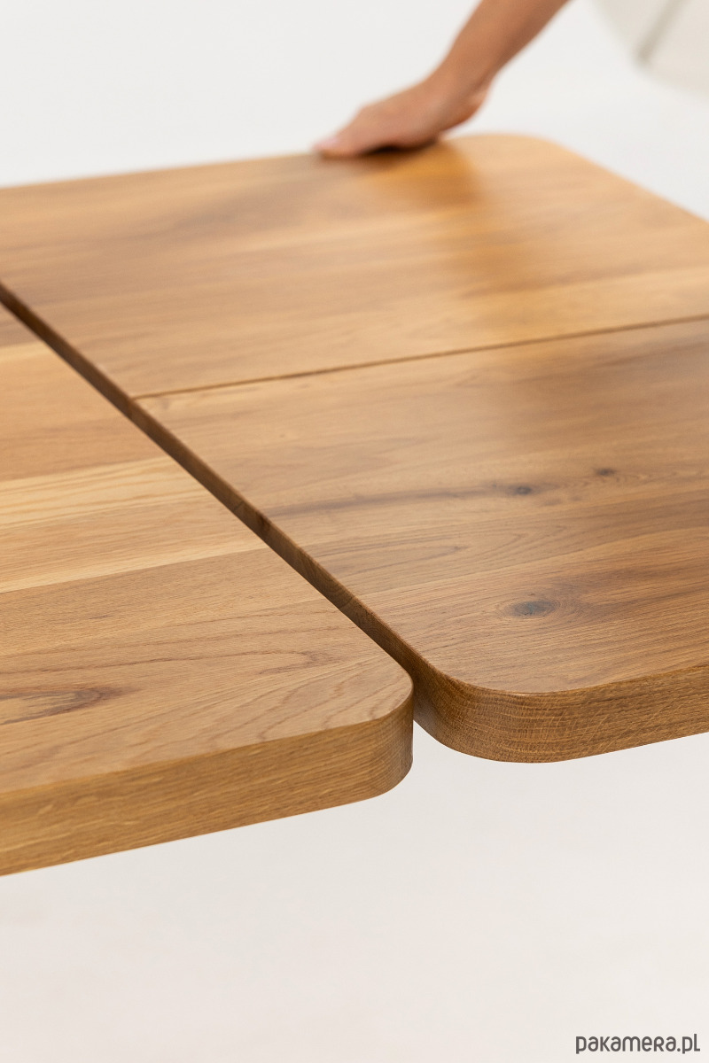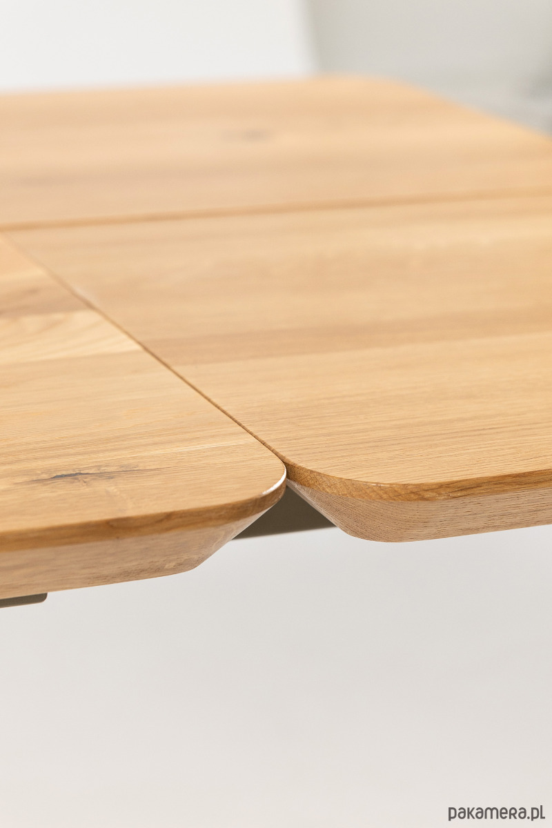 Blat może być klasyczny prostokątny - na prosto lub podcięty, lub owalny (nasza nowość) na prosto lub podcięty. Przystawki przechowujemy oddzielnie, dzięki temu stół nie ma przecięć i na co dzień wygląda jak nierozkładany.