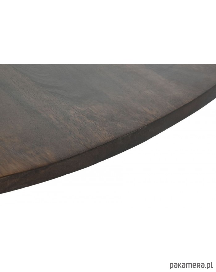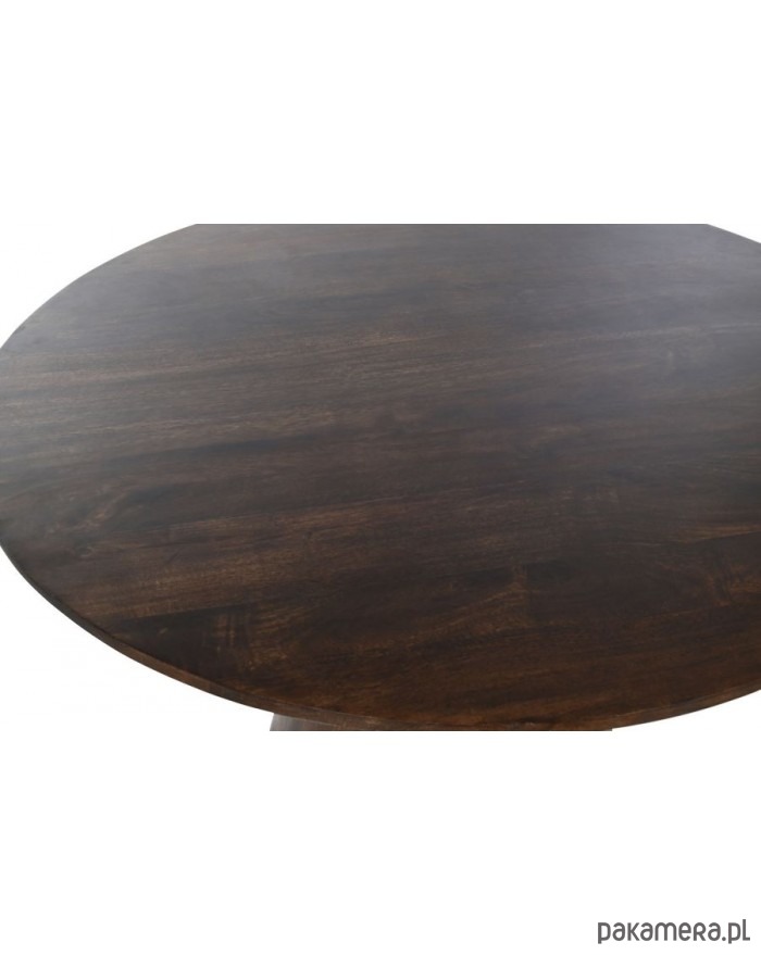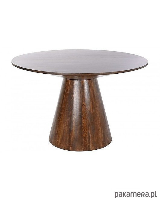 Elegancki stół wykonany został z drewna mango. Okrągły blat spoczywa się na solidnej nodze w kształcie ściętego stożka.