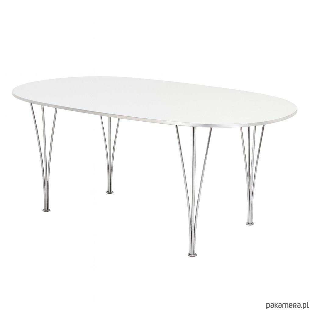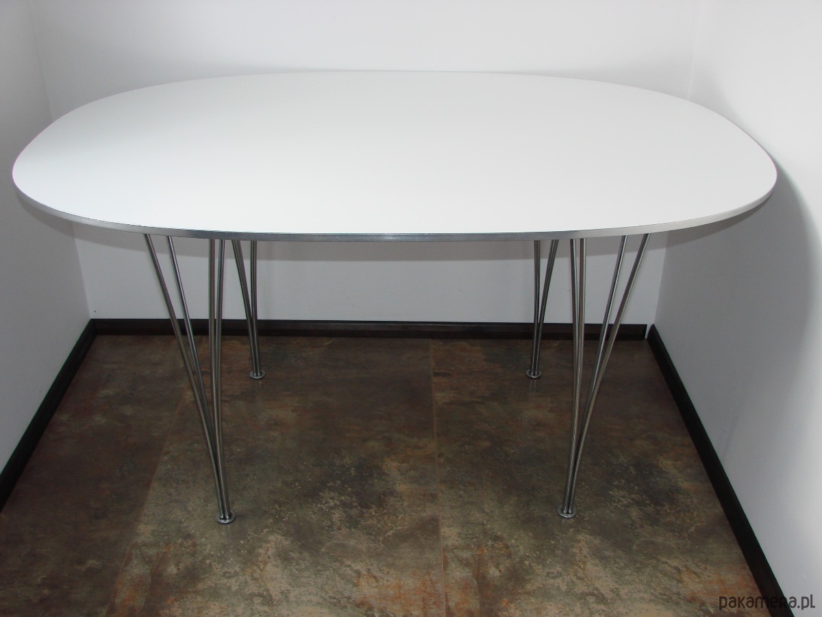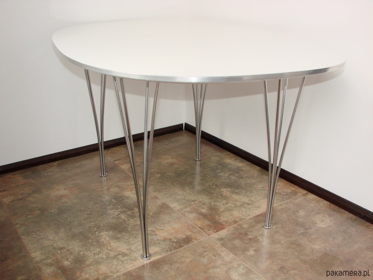 Stół Superellipse projektu Fritz Hansen, Dania, to ponadczasowa klasyka wzornictwa skandynawskiego. Powstał w latach 90. i wyróżnia się charakterystycznym, miękko zaokrąglonym kształtem blatu, który łączy funkcjonalność z nowoczesną estetyką.