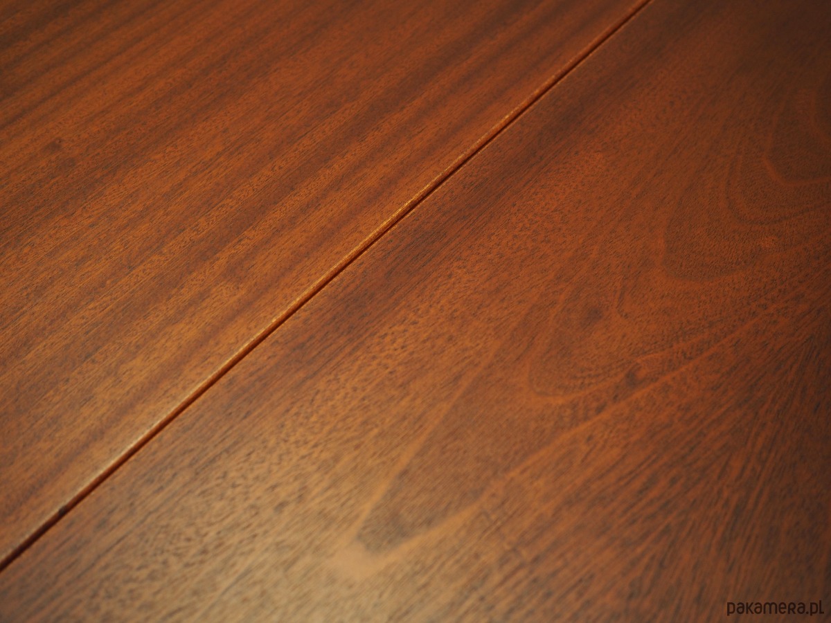 Konstrukcja i blat stołu pokryte zostały fornirem mahoniowym. Nogi wykonane z litego drewna. Powierzchnia po odświeżeniu. Stół posiada możliwość rozłożenia poprzez podniesienie jednej lub obu przedłużek. Konstrukcja stołu została zaprojektowana tak, aby rozkładane elementy były solidnym i stabilnym przedłużeniem blatu głównego. Ponadto stół posiada opcję wydłużenia blatu poprzez rozsunięcie. Wkładka w zestawie.