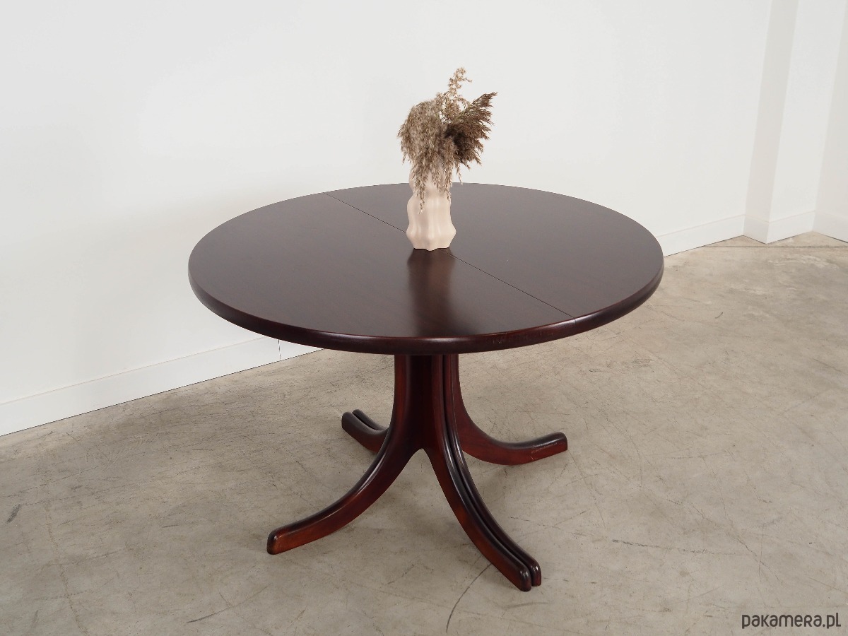 Stół okrągły mahoniowy, duński design, lata 70, produkcja: Dania