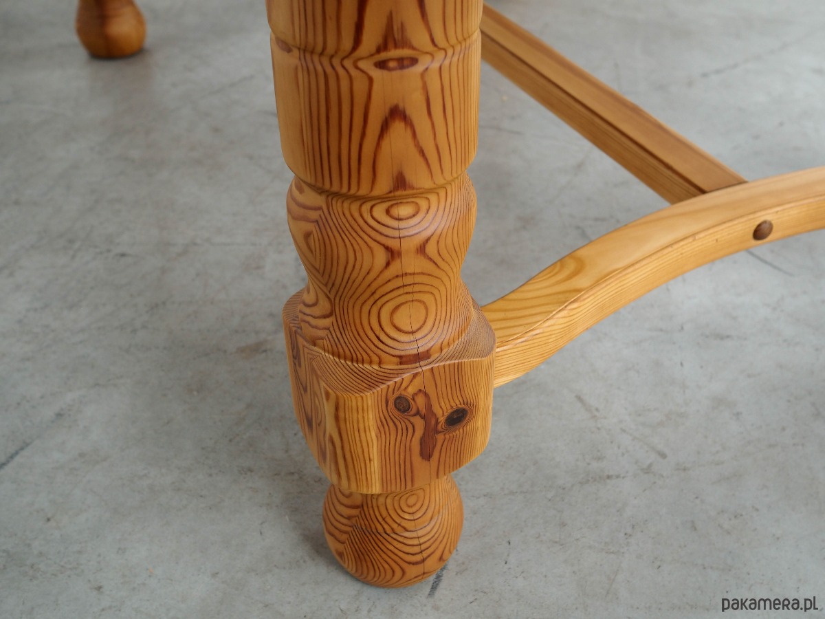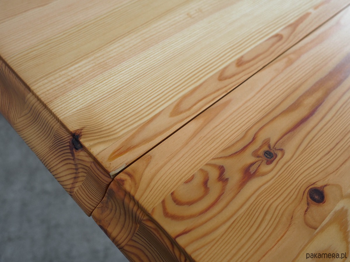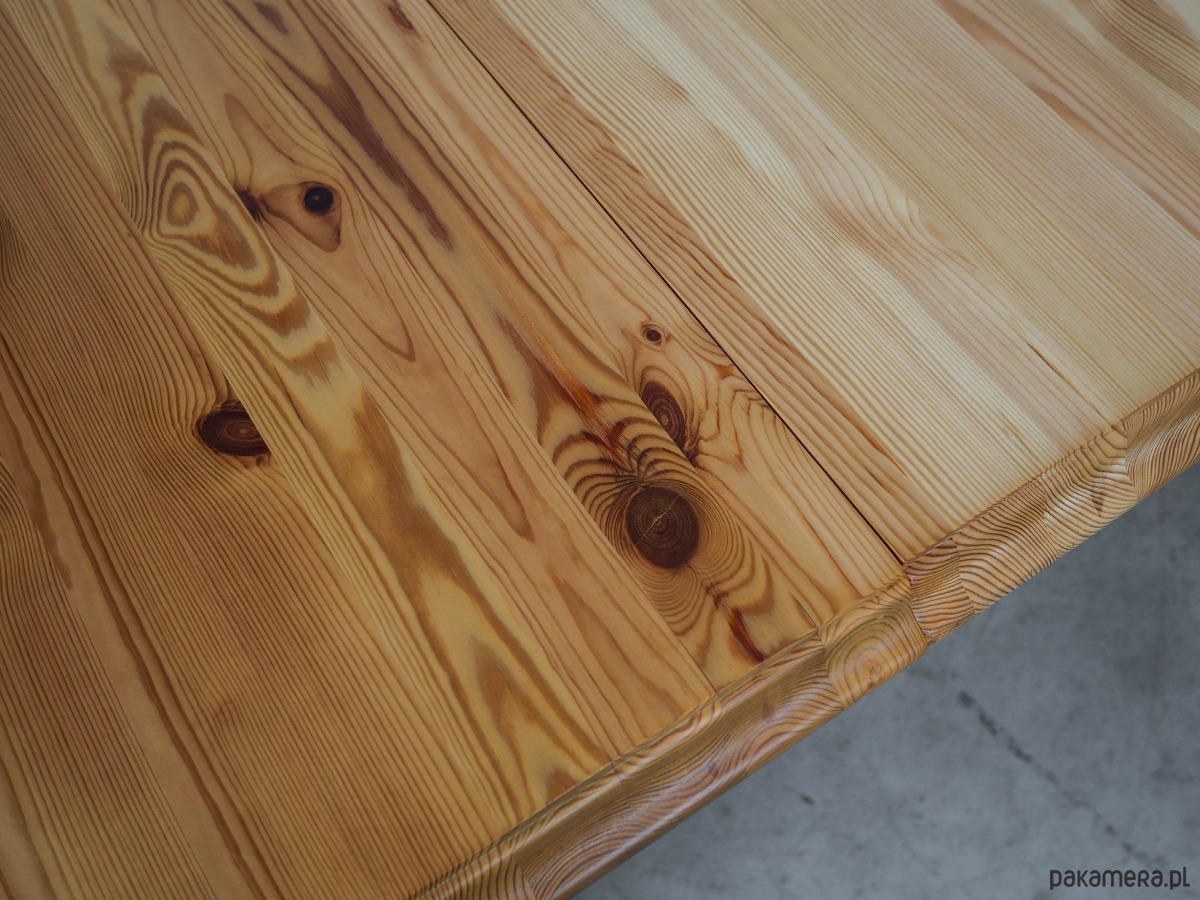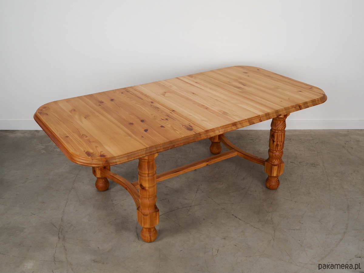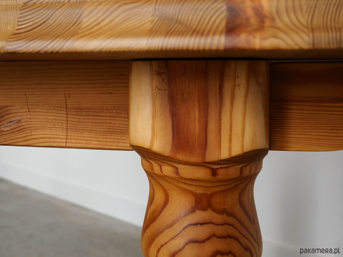 Wykonany z litego drewna sosnowego. Powierzchnia po odświeżeniu. Stół posiada opcję rozłożenia blatu. Konstrukcja stołu została zaprojektowana tak, aby dodatkowa wkładka była solidnym i stabilnym przedłużeniem blatu głównego. W komplecie jedna wkładka.