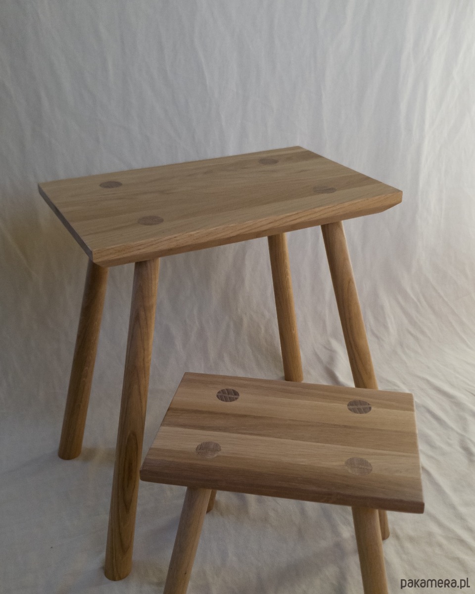 Stołek otrzymasz zabezpieczony woskiem twardym olejnym o efekcie surowego drewna.