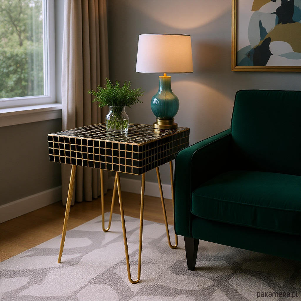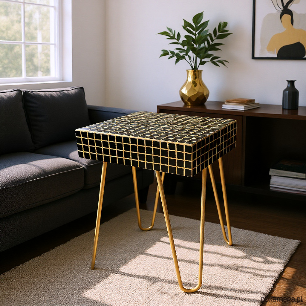 Dopasowane żółte metalowe nogi nadają stolikowi lekkości i dynamiki, zapewniając jednocześnie stabilność i trwałość. Dzięki kompaktowym rozmiarom idealnie sprawdzi się jako stolik pomocniczy, stolik nocny, stolik akcentowy lub efektowny element dekoracyjny w salonie, sypialni lub przestrzeni kreatywnej.