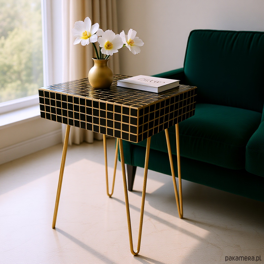 Czarny ceramiczny stolik z mozaiką z żółtą fugą i żółtymi metalowymi nogami to wyrazisty, artystyczny element, który wnosi wyrazisty kolor i rękodzielniczą jakość do każdego wnętrza. Każdy stolik, wykonany w 100% w Polsce w atelier mrcube.studio, jest ręcznie tworzony z wyjątkową dbałością o detale. Blat stolika posiada trwałą podstawę pokrytą ręcznie układaną mozaiką ceramiczną w głębokim odcieniu indygo, podkreśloną kontrastującą pomarańczową fugą, która dodaje projektowi energii i nowoczesnego charakteru.